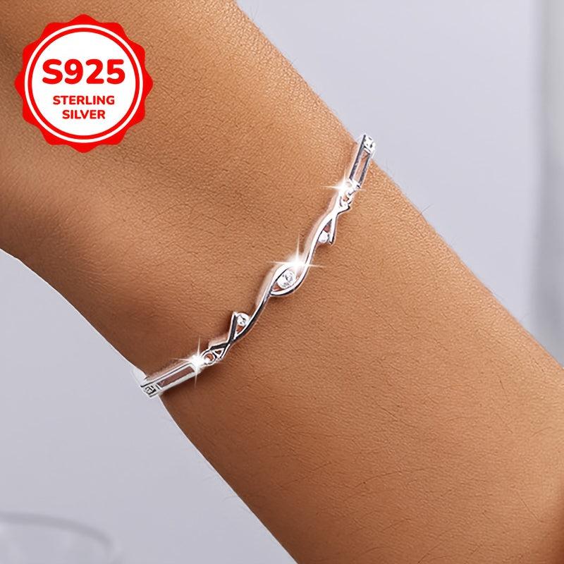 This 925 Silver Bracelet is perfect for those with low allergies. It features three stylish stones and is a fashionable and versatile accessory. It makes a great gift for couples.