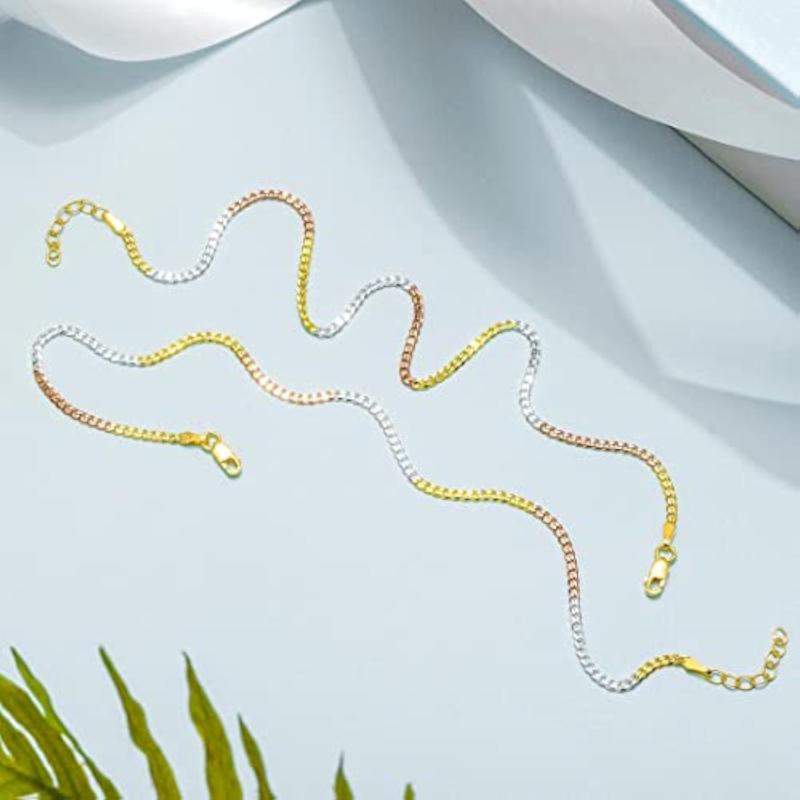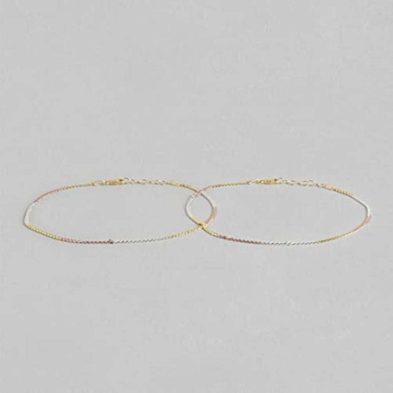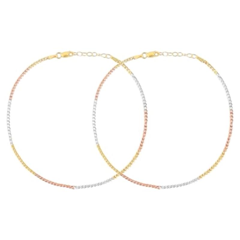 Elegant anklet set made of hypoallergenic 925 sterling silver with triple tone plating.