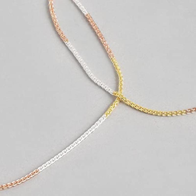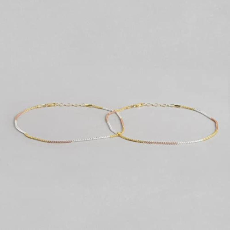Elegant pair of anklets made of 925 sterling silver with triple tone plating. Hypoallergenic and suitable for sensitive skin. A perfect accessory for any outfit.