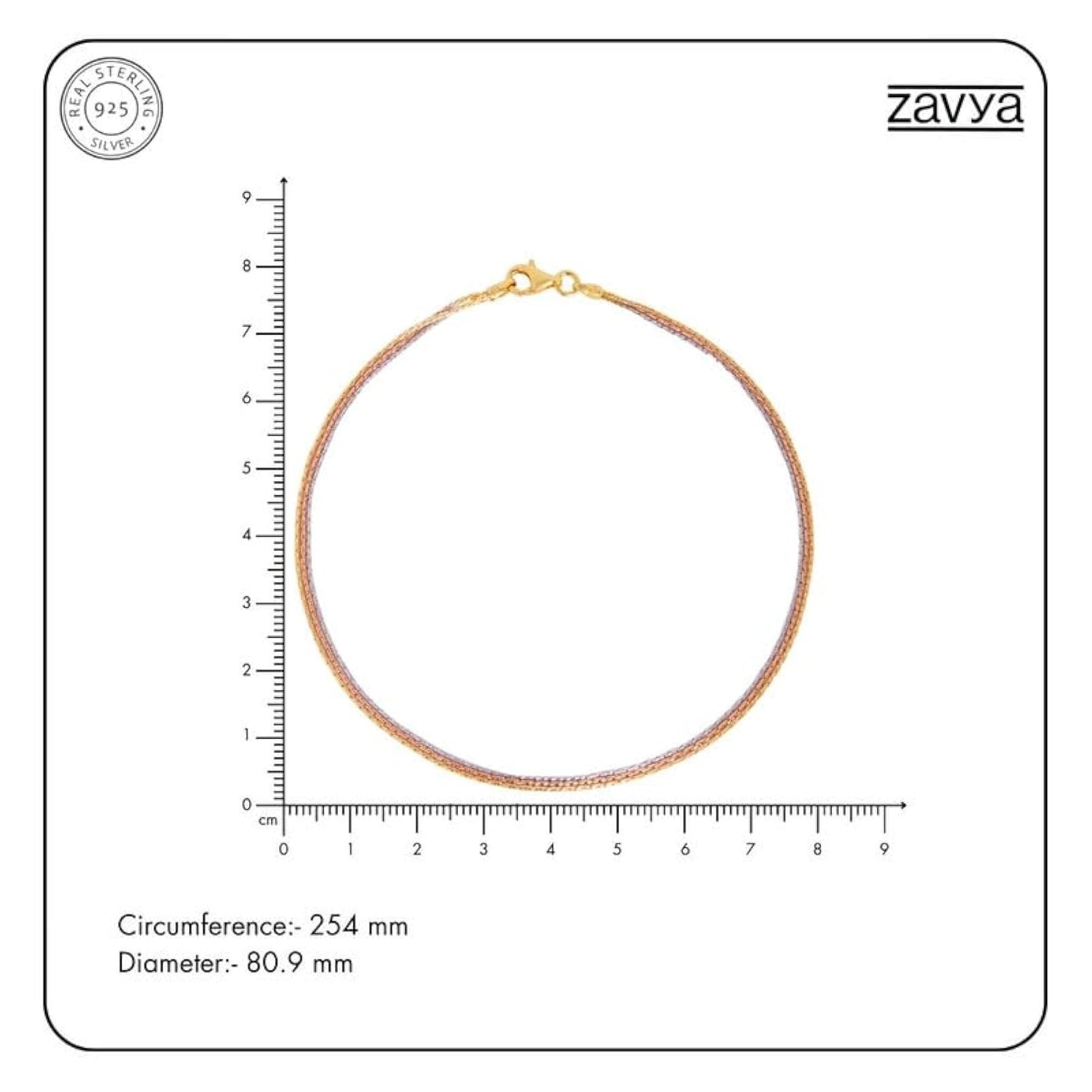 925 Silver Triple Tone Rhodium & Rose Plated Chain Anklet