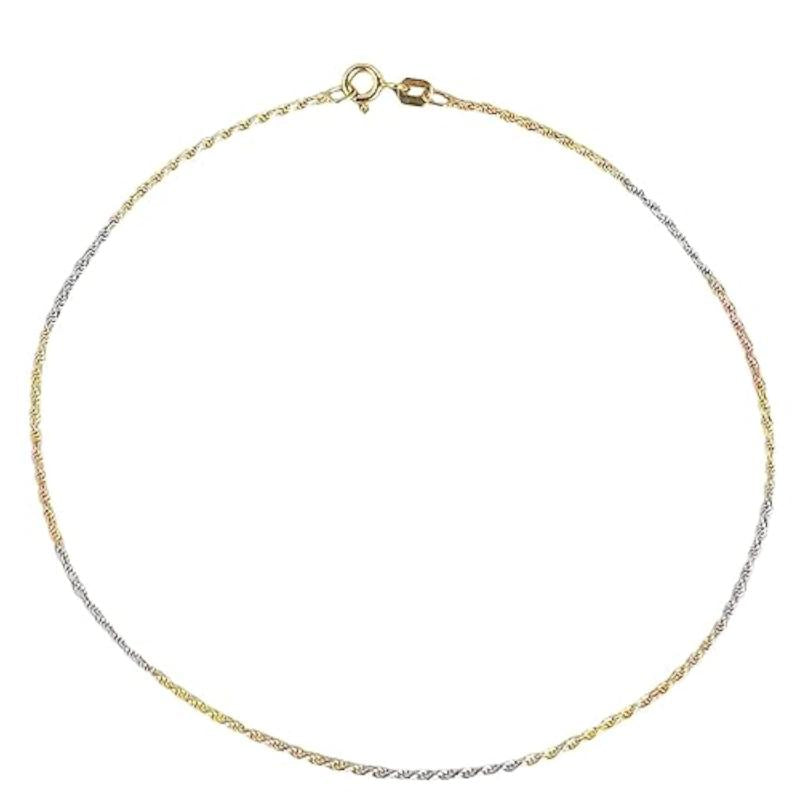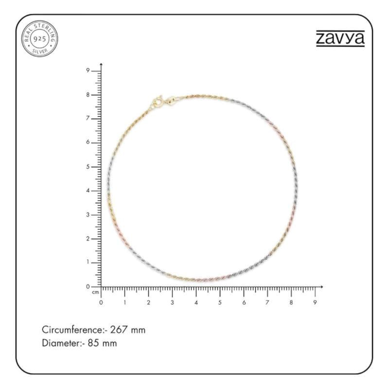 Add a touch of elegance to your ankle with this stunning 925 sterling silver twisted chain anklet featuring triple tone multicolour rhodium and rose plating. Perfect for everyday wear or special occasions.