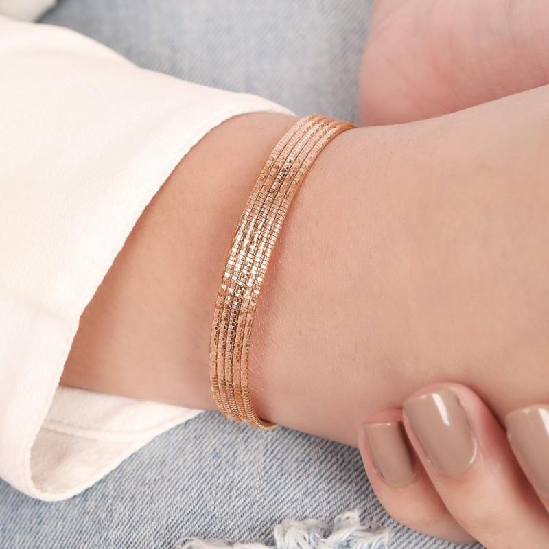 Add a touch of elegance to your look with this stunning wraparound bracelet. Made of 925 sterling silver with a rose gold plating, it features a beautiful design that will complement any outfit. The bracelet is hallmarked for authenticity and quality.