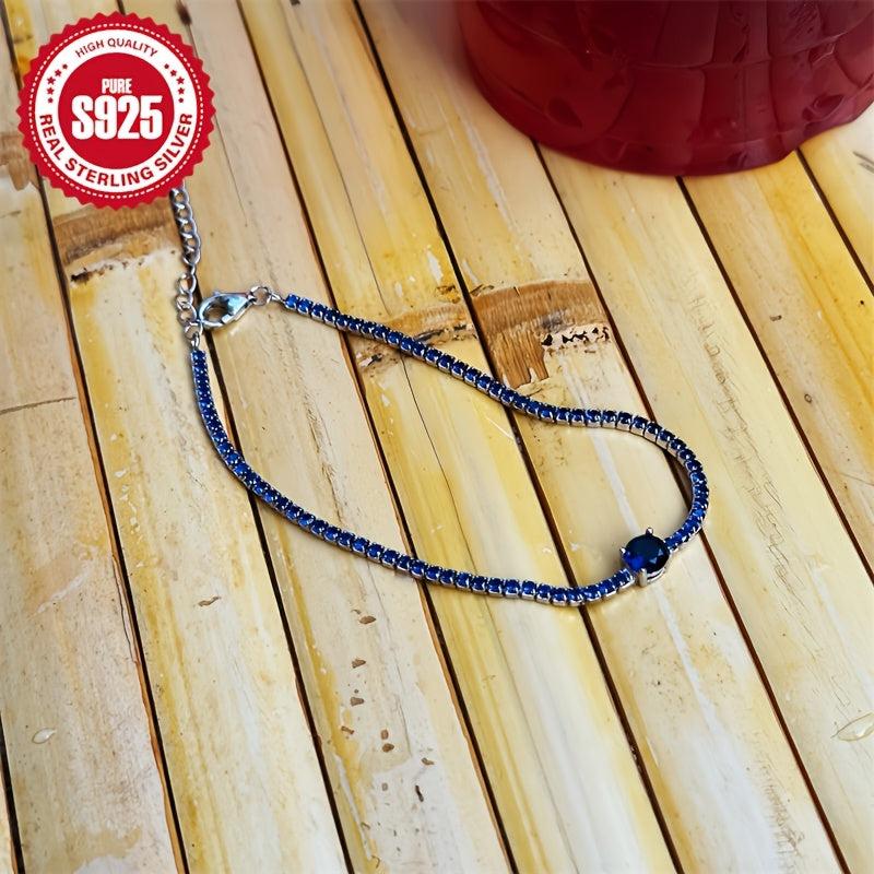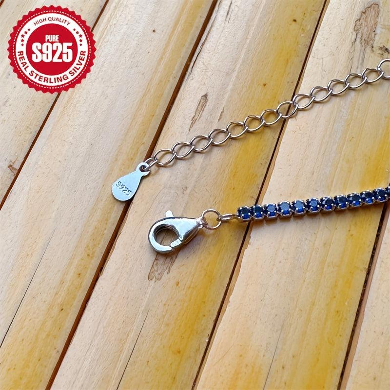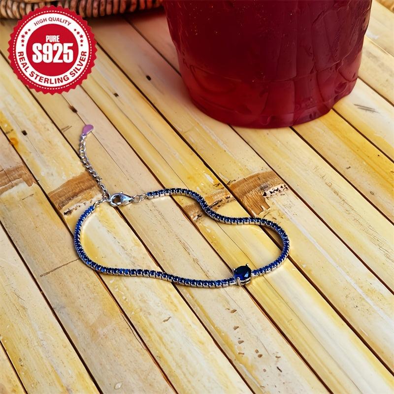 Gorgeous tennis chain bracelet made of 925 sterling silver adorned with sparkling zirconia stones. Ideal for engagements and birthdays. Weighs 3.7g.