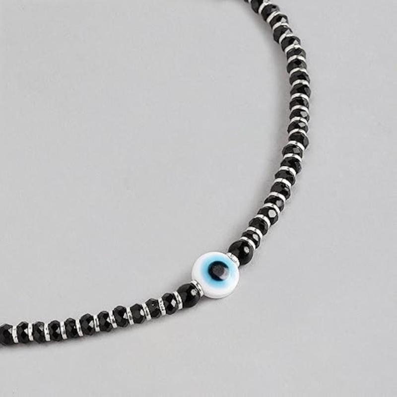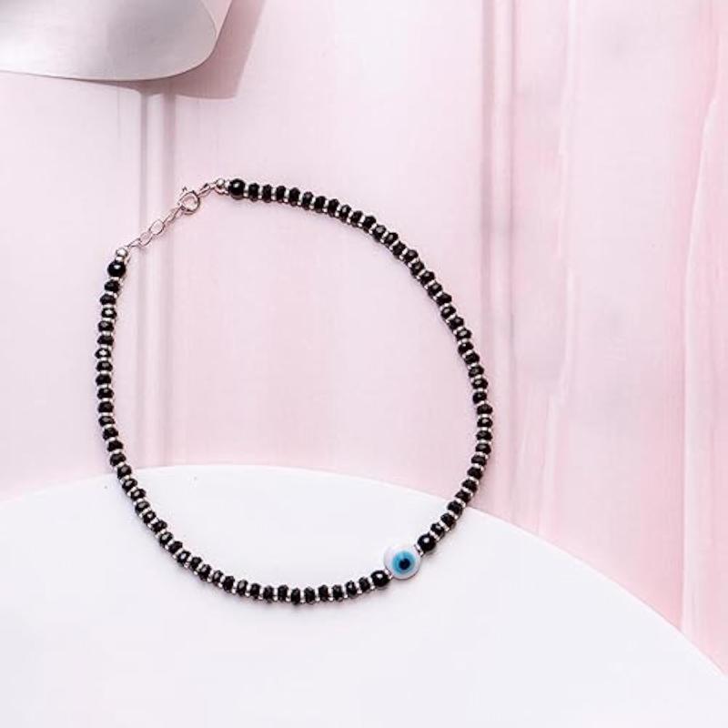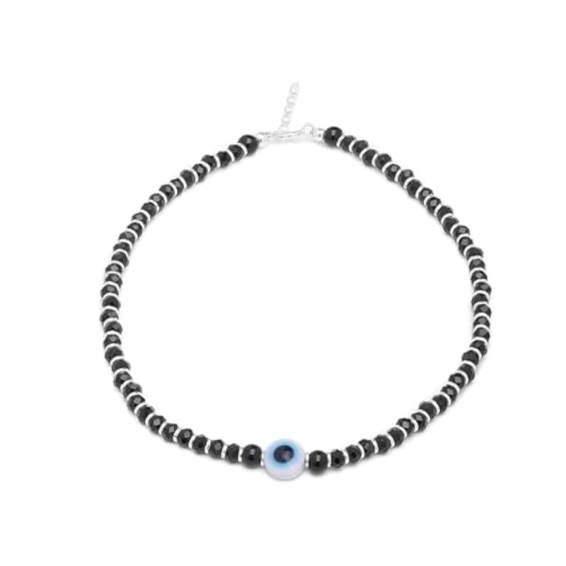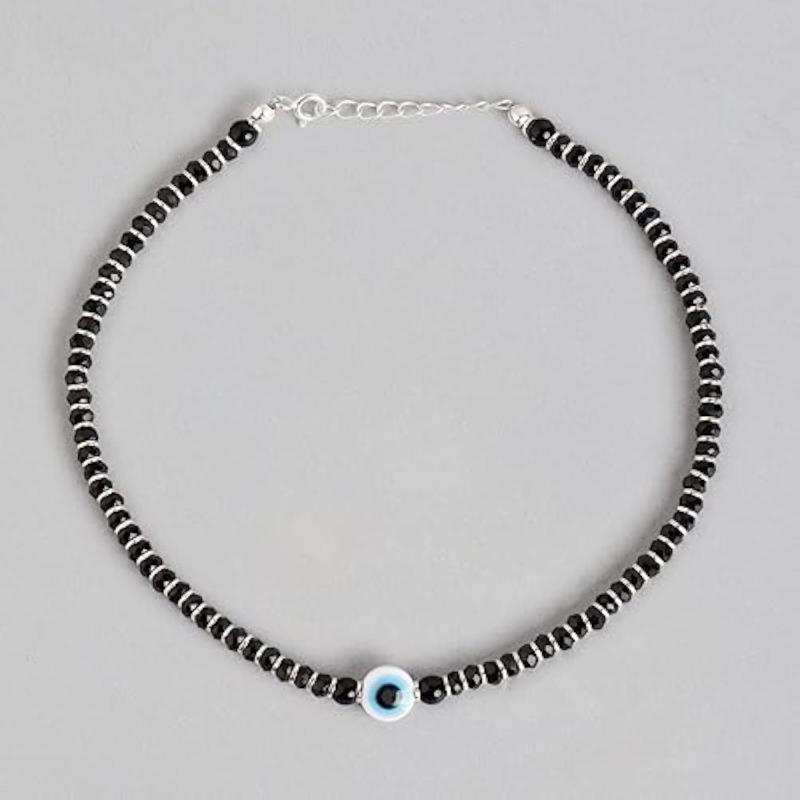Enhance your beauty with this stunning 925 sterling anklet featuring an evil eye design. Rhodium plated for durability and shine.