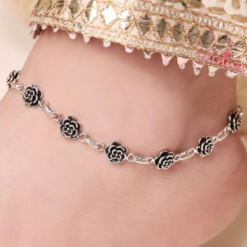 Add a touch of elegance to your ankle with these beautiful floral rhodium anklets made from 925 sterling silver.