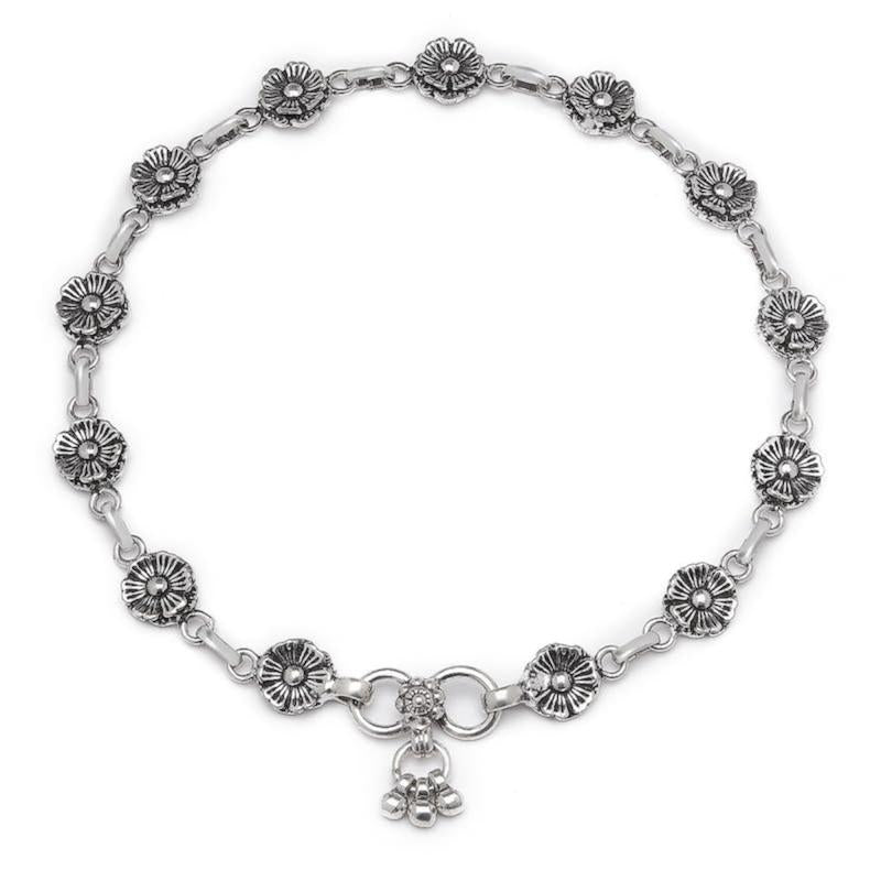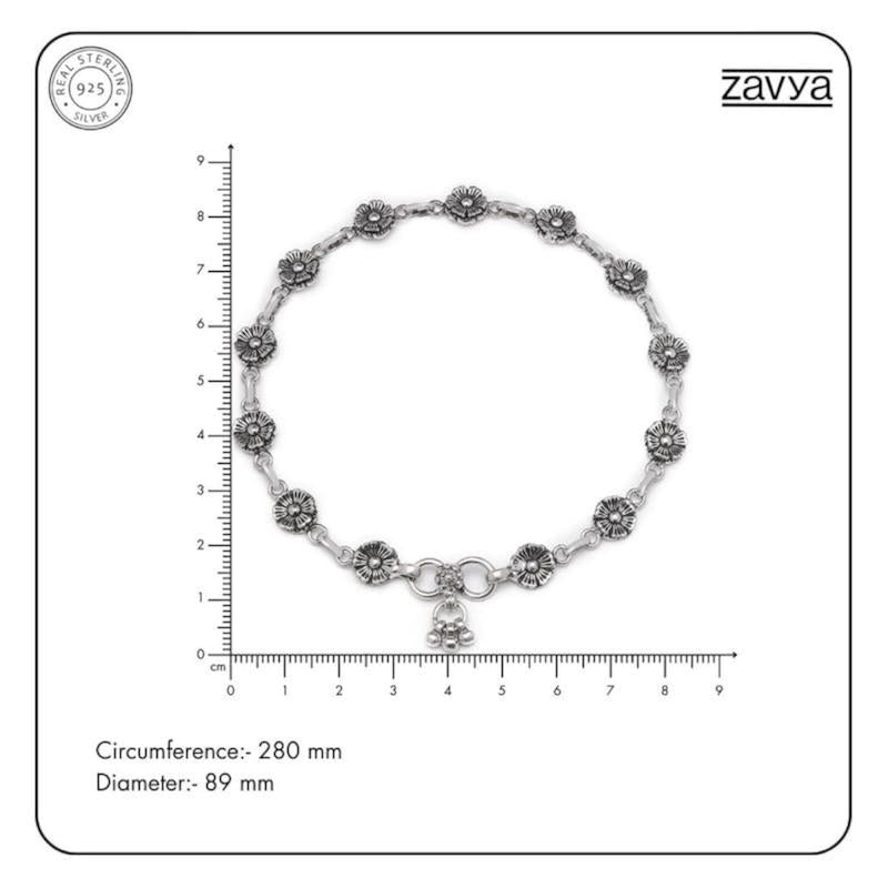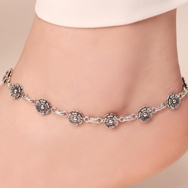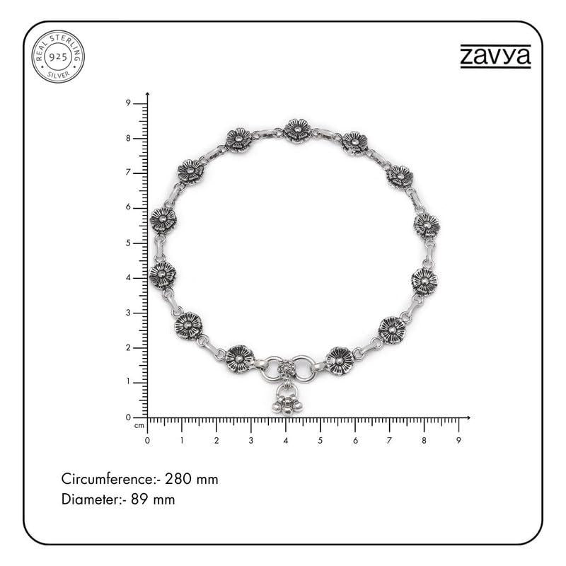 This pair of anklets is made of 925 sterling silver with a modest floral design and rhodium plating. Hypoallergenic and perfect for everyday wear.