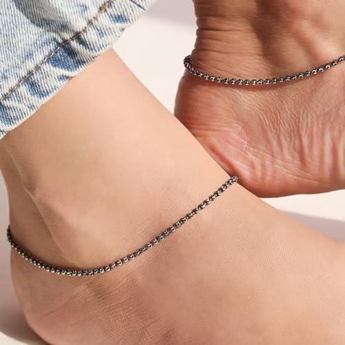 Elegant and simple 925 sterling silver anklet pair with rhodium plating. Hypoallergenic and comfortable to wear for all occasions.