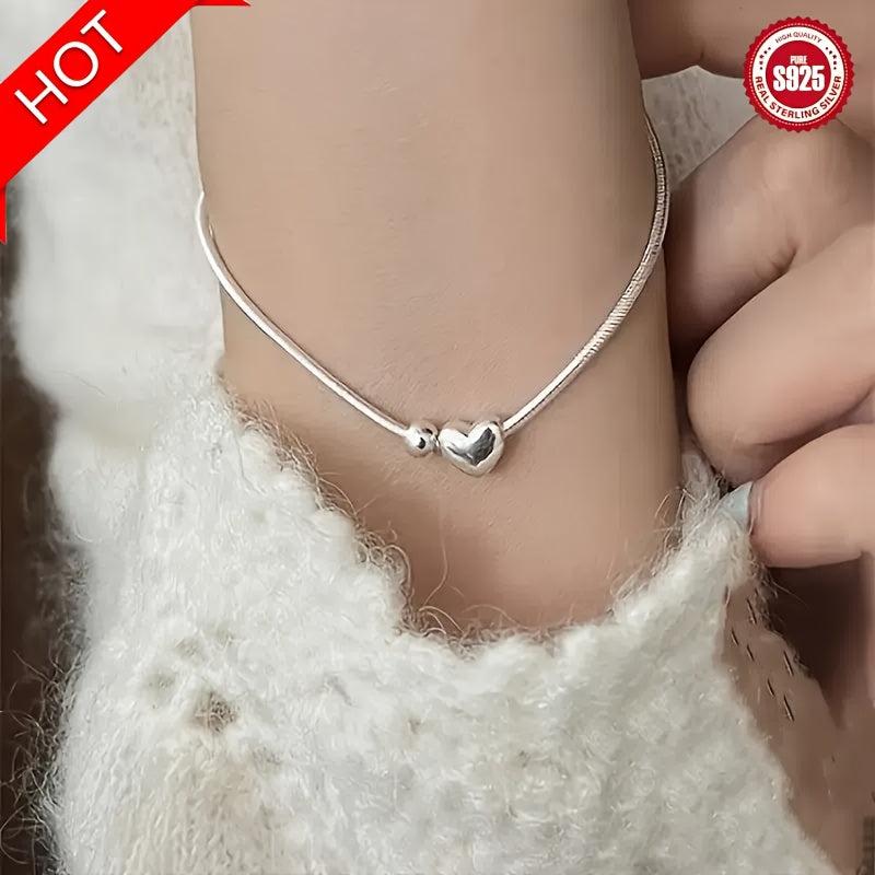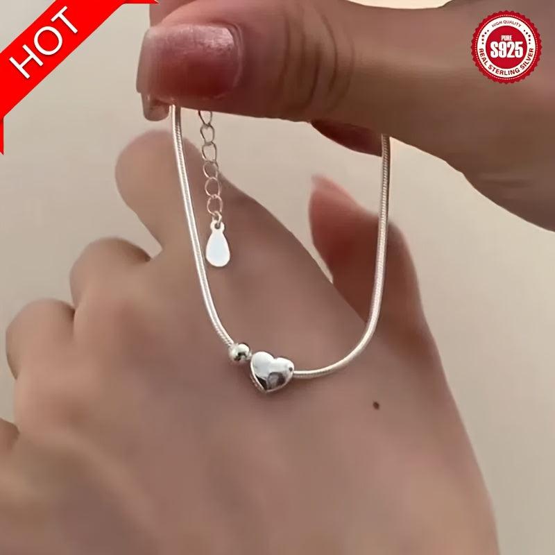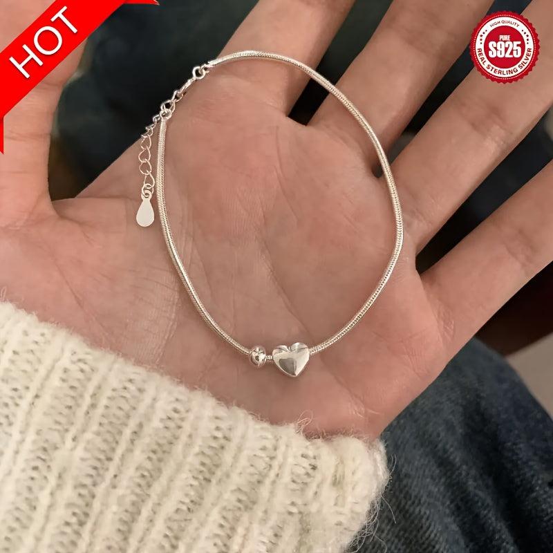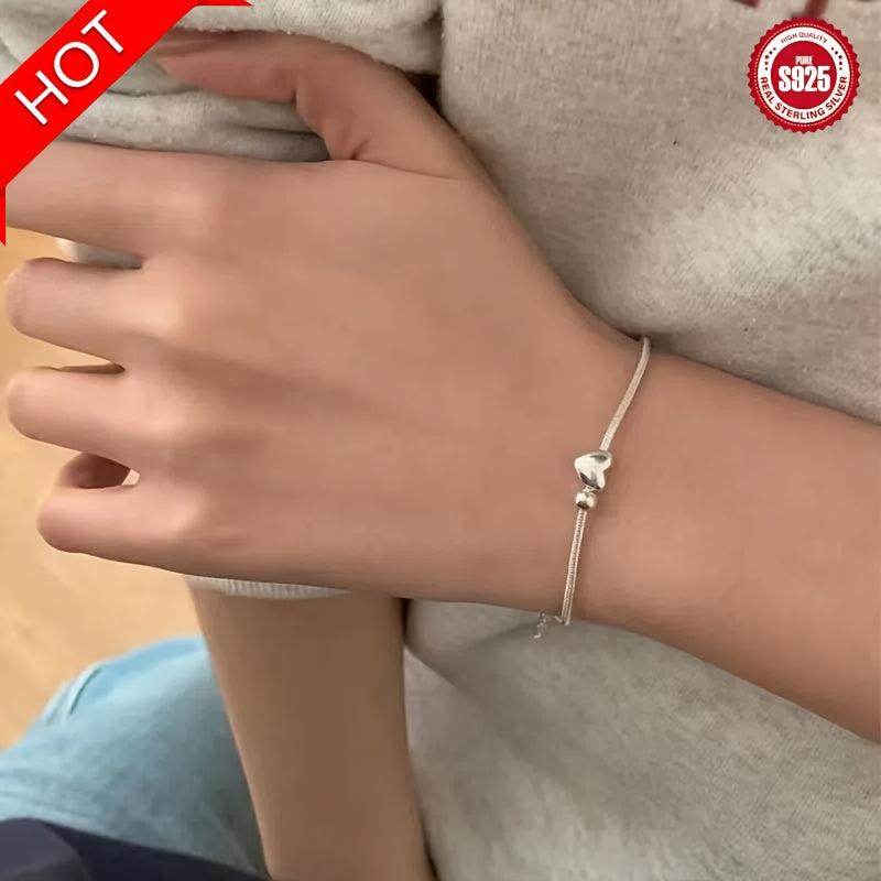This bracelet features a heart pendant design in 925 sterling silver, blending vintage college style with modern charm. It's perfect for everyday wear and adds a touch of elegance to party outfits. An ideal gift for Christmas, anniversaries, or special occasions.