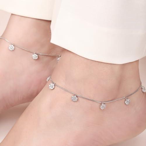 Enhance your ankle with this beautiful pair of 925 sterling silver anklets featuring cubic zirconia floral design. Hypoallergenic and stamped for authenticity.