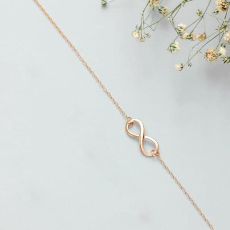 This pair of anklets features a modest infinity rose design plated with 925 sterling silver. Hypoallergenic and stamped for authenticity.
