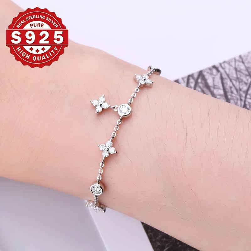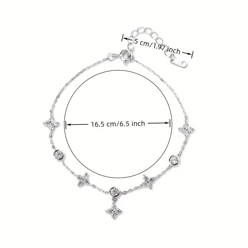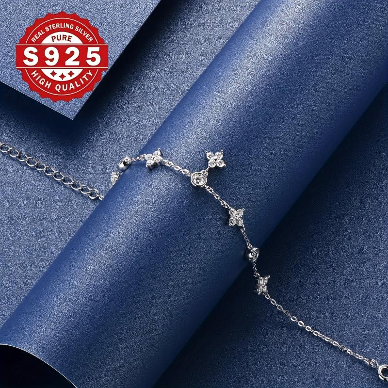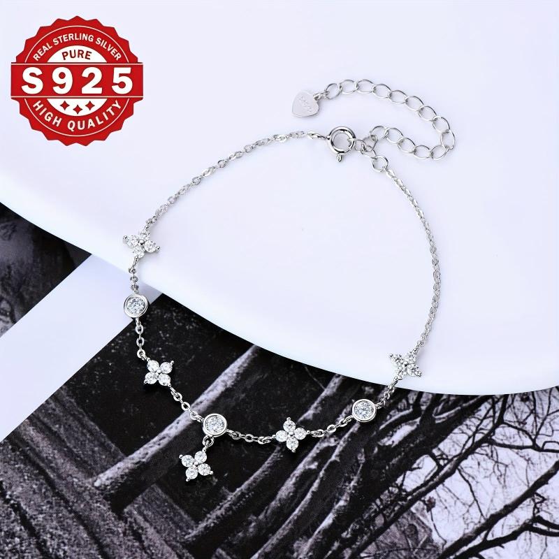 This beautiful bracelet features a mini flower design crafted from 925 sterling silver and adorned with synthetic zirconia stones. Perfect as a lucky charm accessory.