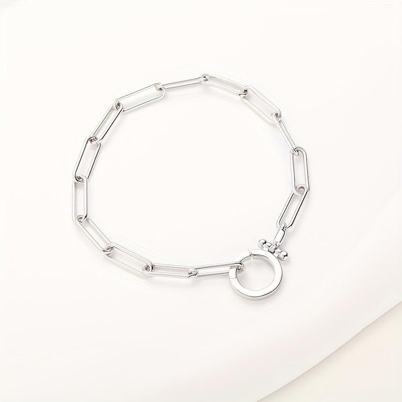 Get this stylish and durable sterling silver paperclip chain bracelet featuring a signature circle clasp. Perfect for everyday wear or special occasions.