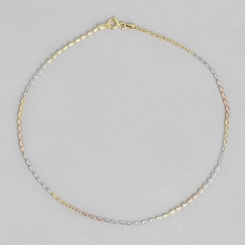 Add a touch of elegance to your ankles with this stunning anklet chain made from 925 sterling silver. The triple tone design features rhodium and rose plating for a unique and stylish look.