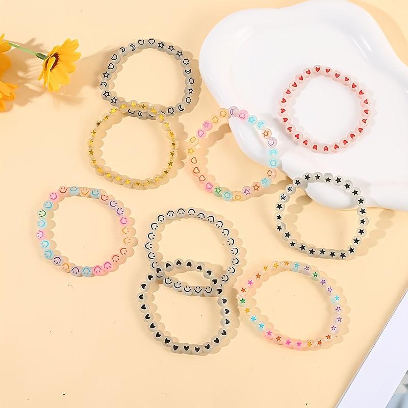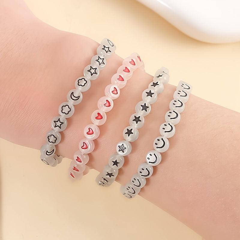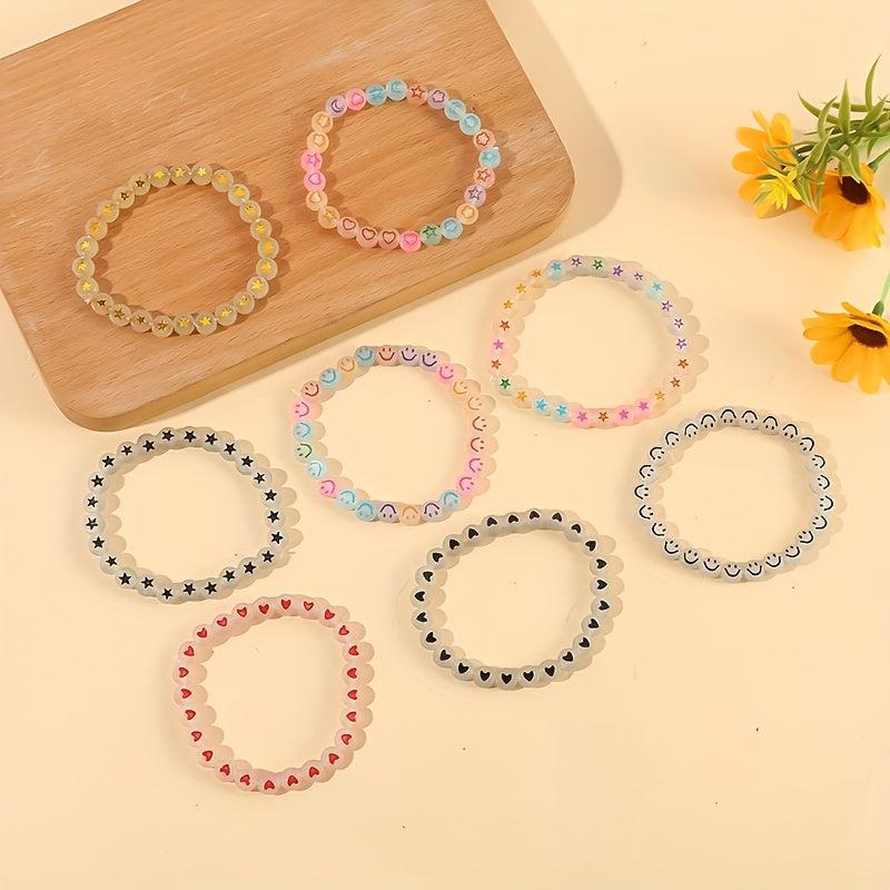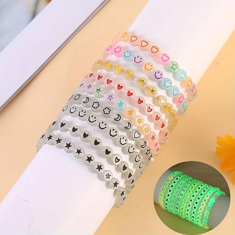 This set includes 9 bracelets with cartoon patterns that glow in the dark. Perfect for creating your own unique bracelet designs.