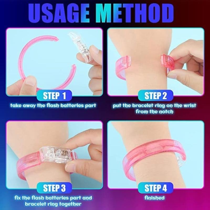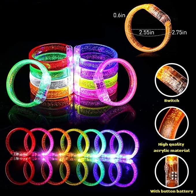 Add a vibrant touch to your celebrations with these multicolor acrylic LED flashing bracelets. Perfect for bedroom ambient light, birthday parties, seaside pool parties, and carnivals.