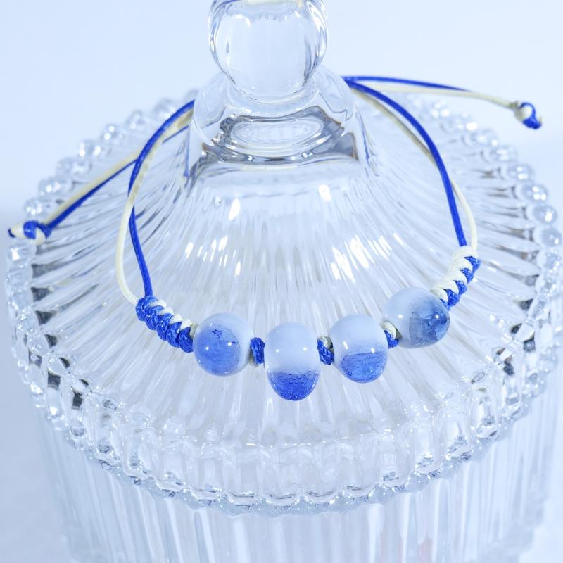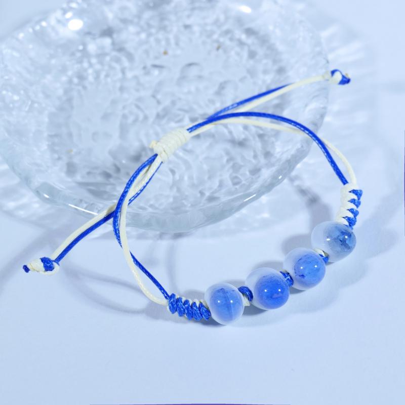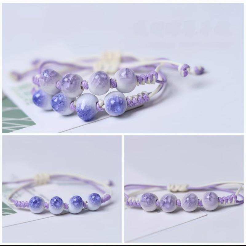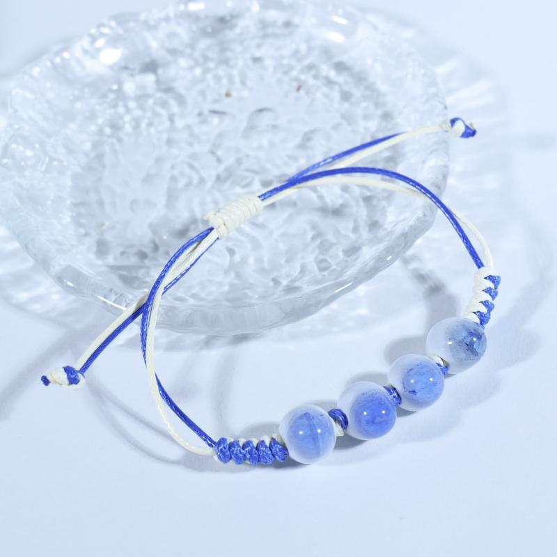 This beautiful bracelet features crackle beads and a braided cord, making it perfect for everyday wear. It's a great gift for birthdays or as a casual accessory for relaxation.