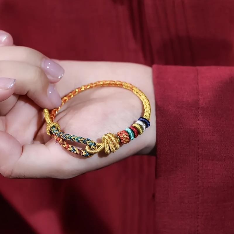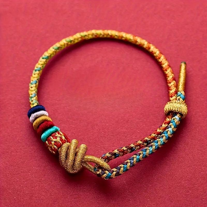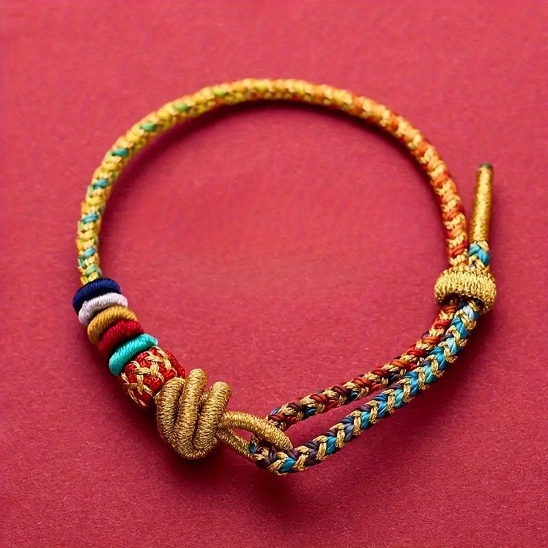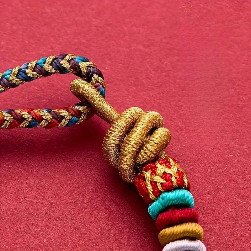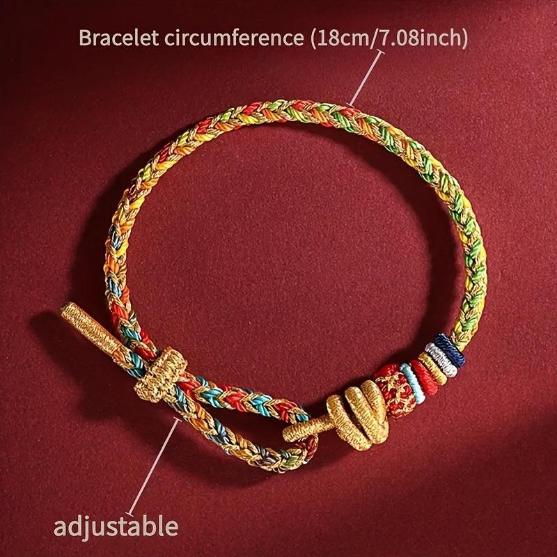 This braided bracelet features a lucky knot design inspired by Chinese tribal style. It is made of synthetic fiber rope and is perfect for Halloween or everyday casual wear.