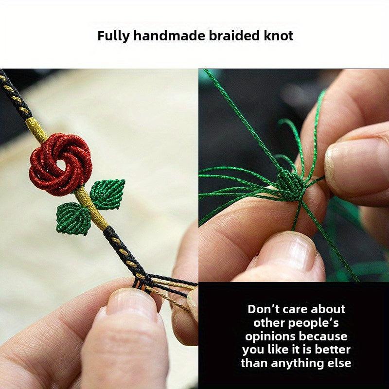Express your love with these hand woven rose bracelets that are perfect for couples. The adjustable design allows for a comfortable fit and the DIY beadable nylon rope lets you personalize your jewelry with floral patterns.