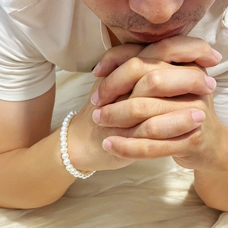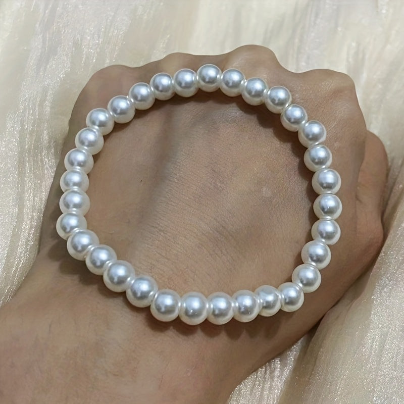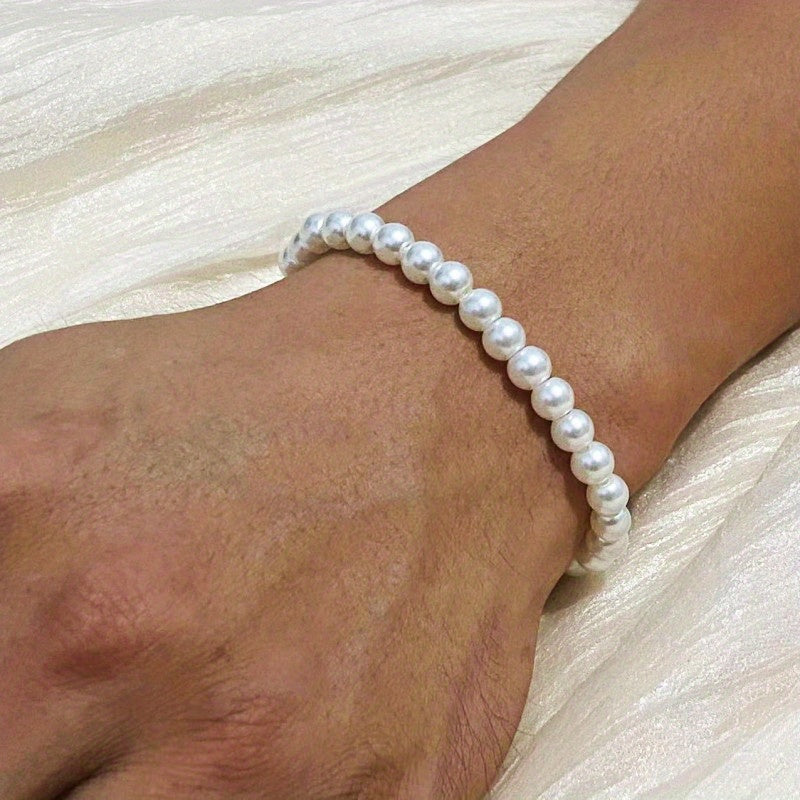 This stylish bracelet features 6mm glass artificial pearl beads and an adjustable size design. Perfect for beach jewelry or as a gift for men, women, or couples.