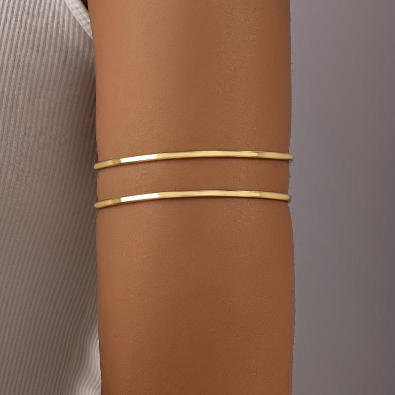 Enhance your style with this adjustable golden arm bracelet featuring a minimalist punk design. Perfect for adding a touch of edgy charm to your outfit.