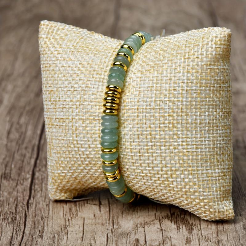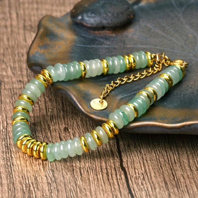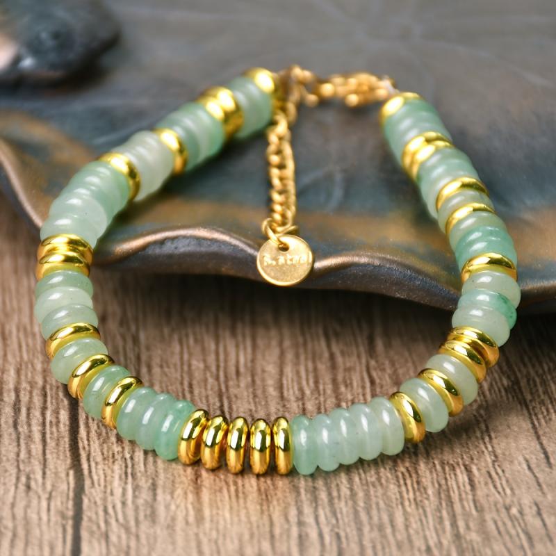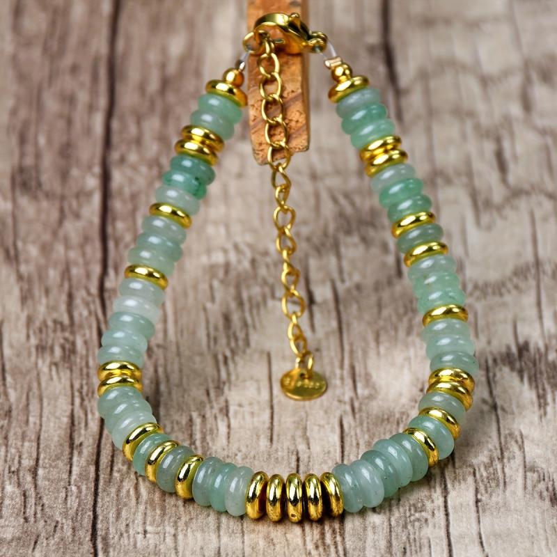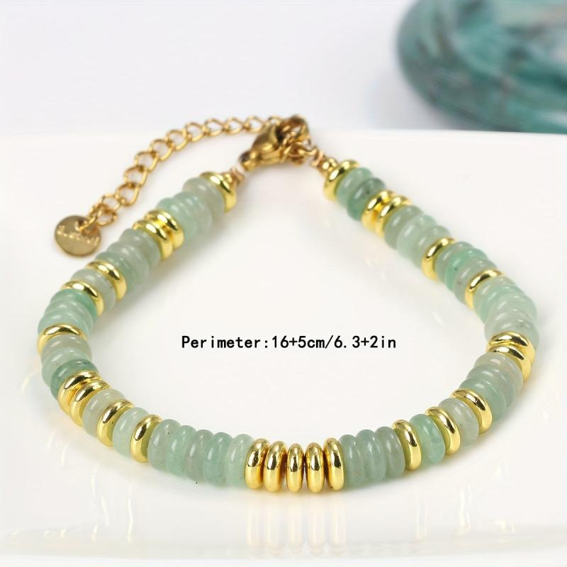Stay stylish with this bohemian green aventurine bead bracelet featuring golden spacers. Made from natural stone, it's perfect for daily wear or vacations. Great as a gift for friends or holidays.