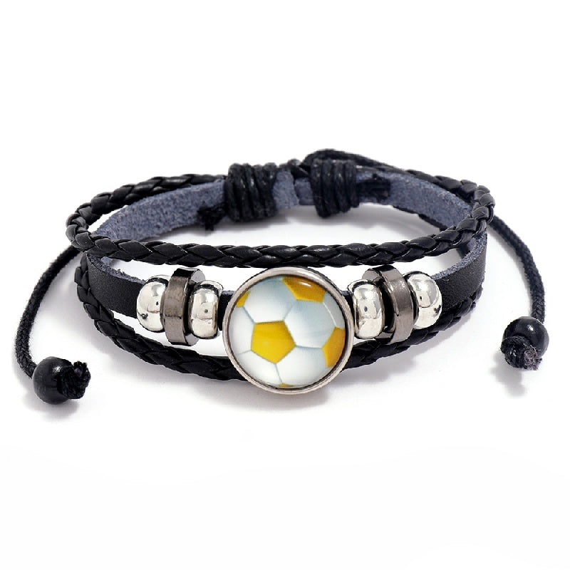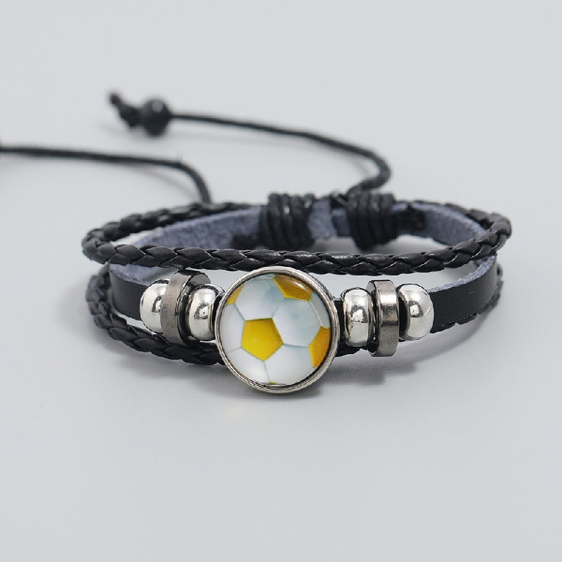 Add a touch of funk to your style with this adjustable leather bracelet featuring a football charm and beaded design. Perfect for soccer enthusiasts!