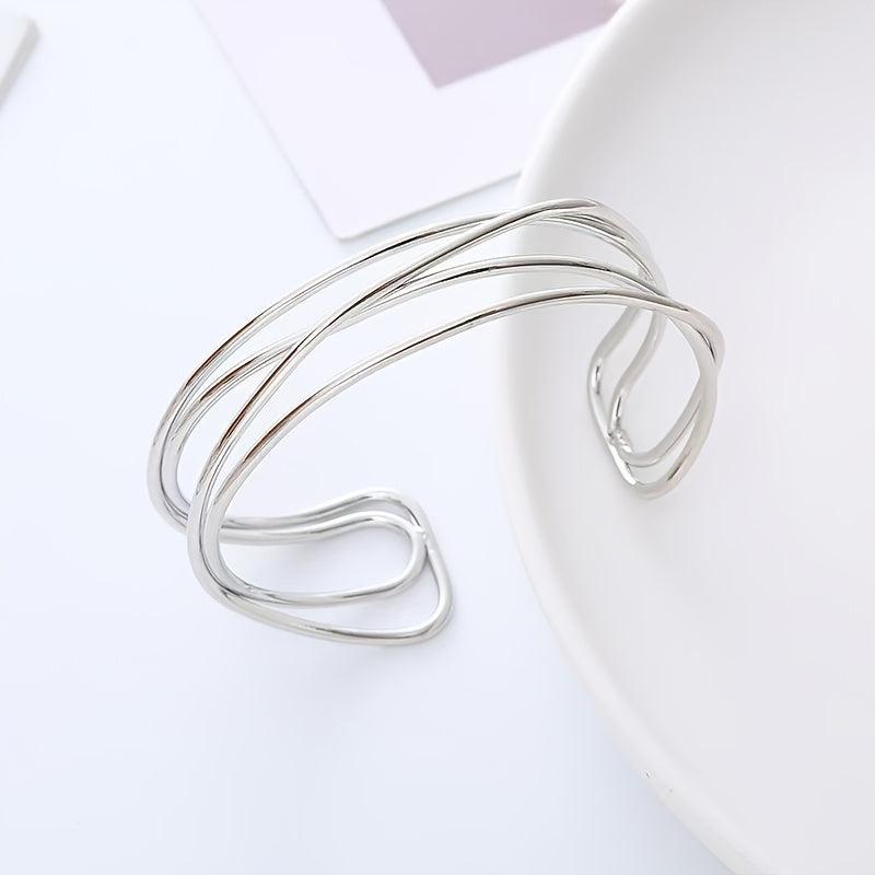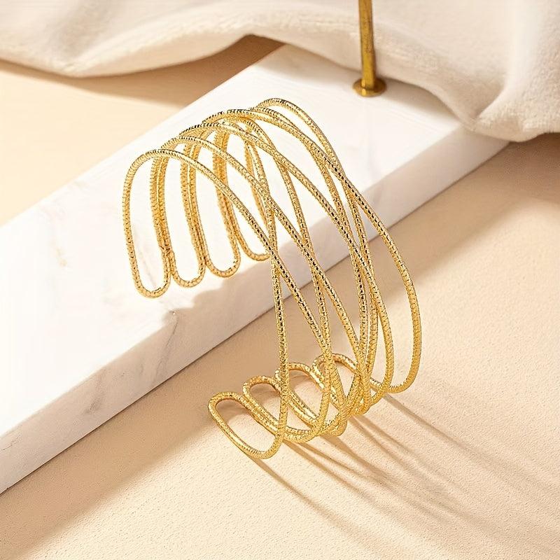 Elegant and versatile, this open cuff bracelet features a intricate crossed loop design. Perfect for everyday wear or special occasions, this vintage-inspired piece is plated with KC Golden for a luxurious finish.