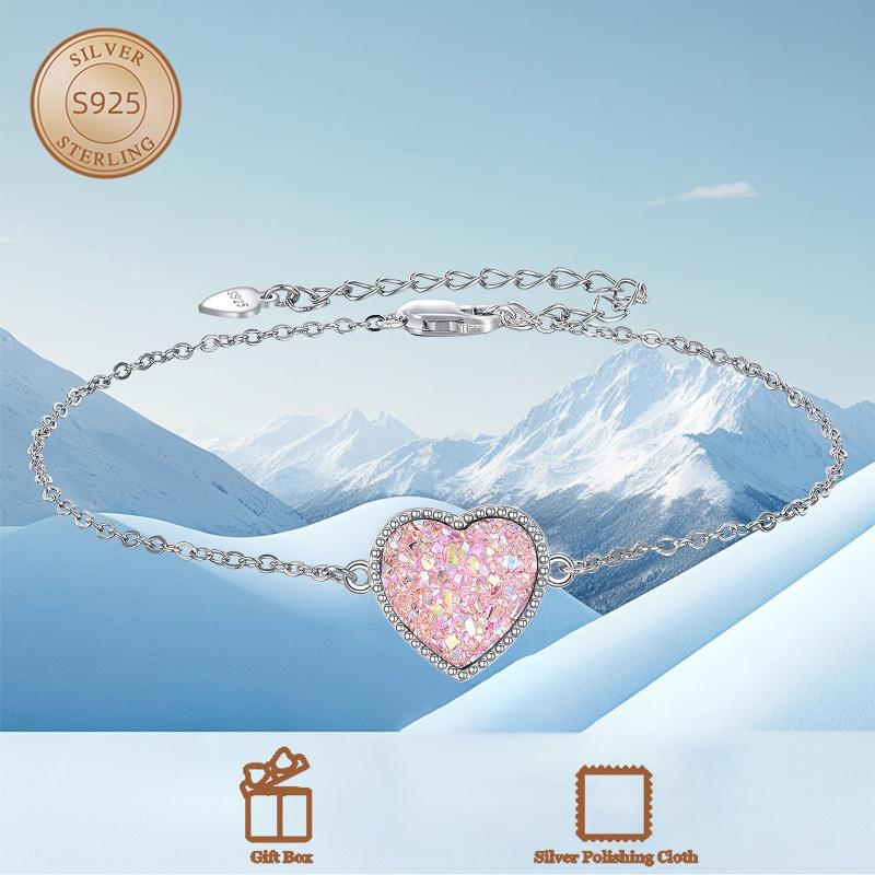 This elegant pink heart link bracelet is made of high-quality 925 sterling silver, perfect for women, mothers, and sisters. The adjustable chain adds versatility to this beautiful accessory.