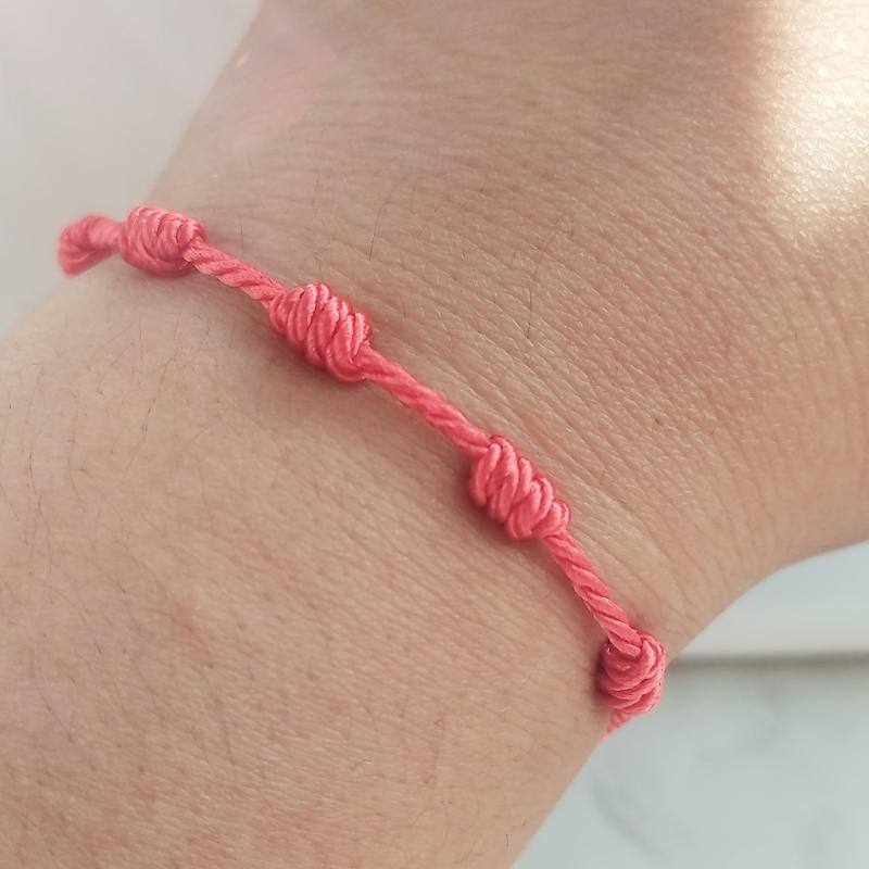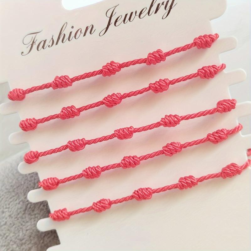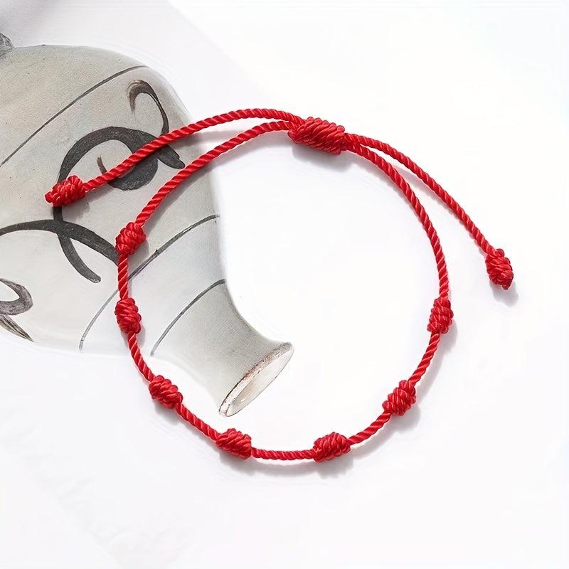 This adjustable red bracelet features a pull weave design with seven sections and a flat style. It is perfect for adding a pop of color to any outfit.