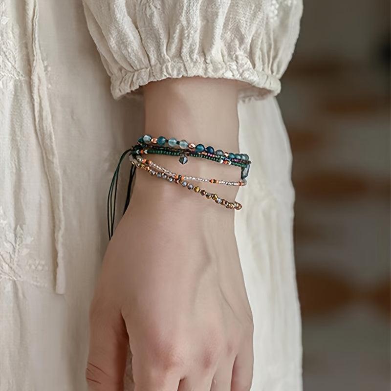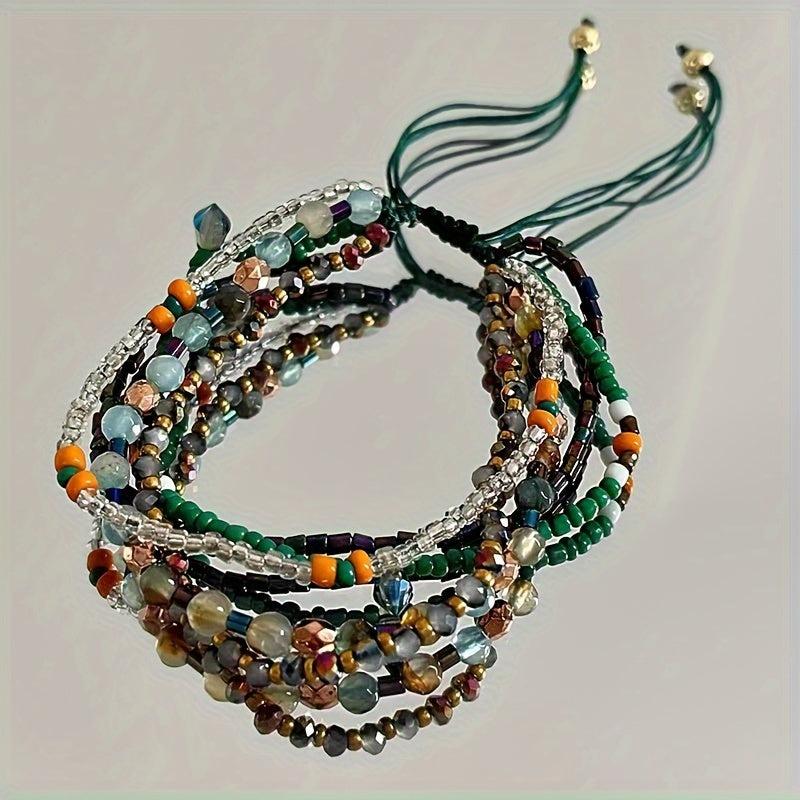 This colorful hand-woven bracelet offers a bohemian touch to your look. It's adjustable to fit various wrist sizes and makes a lovely Christmas gift.