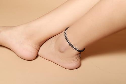 Beautiful adjustable silver beads anklet for girls with traditional design and size S. Perfect for special occasions or daily wear.