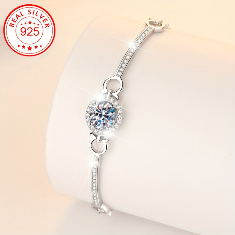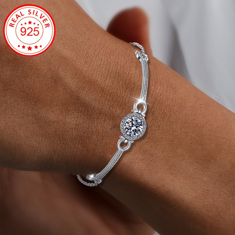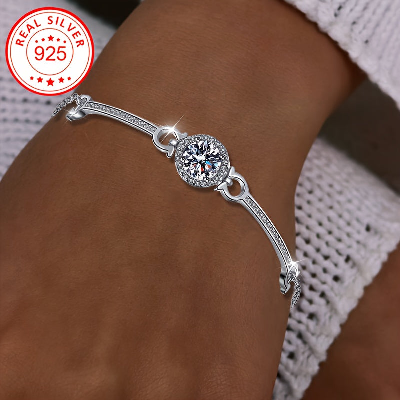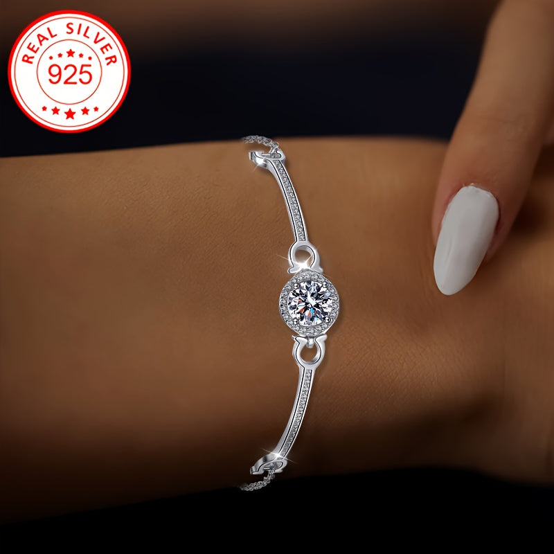 Elegantly designed bracelet featuring round and square zirconia stones in a dazzling display. This adjustable bracelet is made of S925 silver, perfect for daily wear, weddings, banquets, parties, or as a thoughtful gift for women.