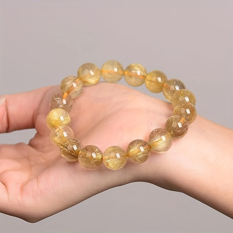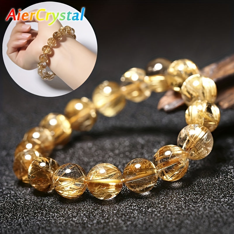 Natural quartz healing bracelet with citrine round beads. Ideal for women and men, brings luck and positive energy.