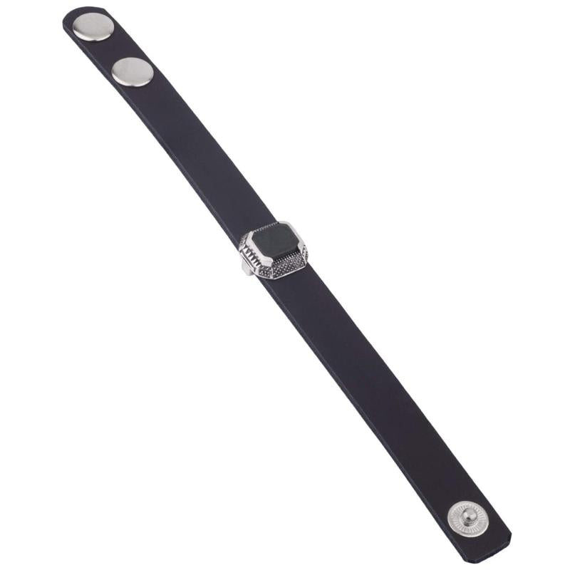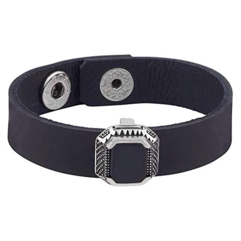 This premium leather bracelet features an all-black design, perfect for adding a touch of style to any outfit.