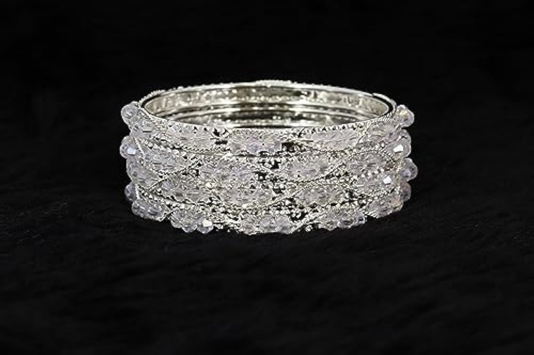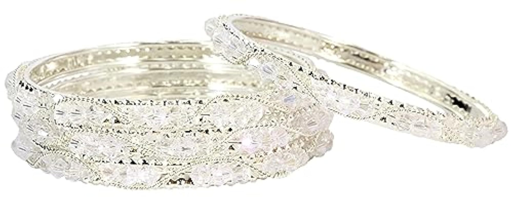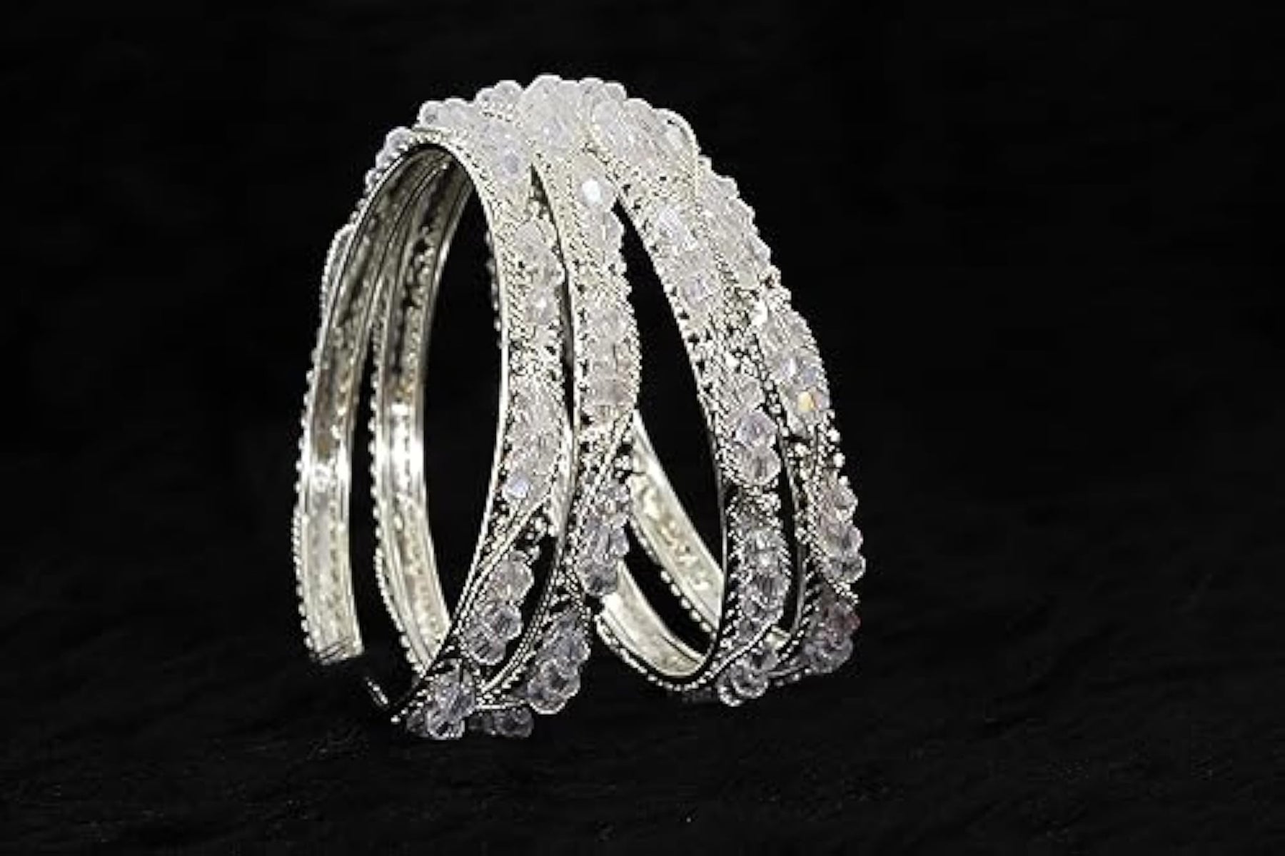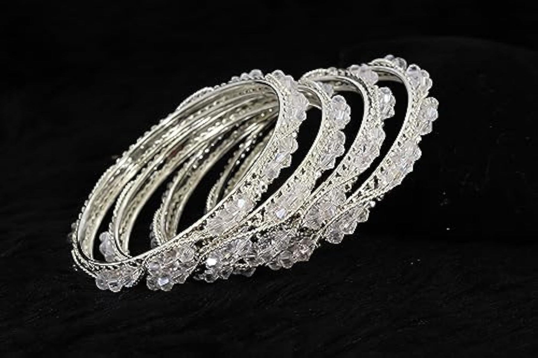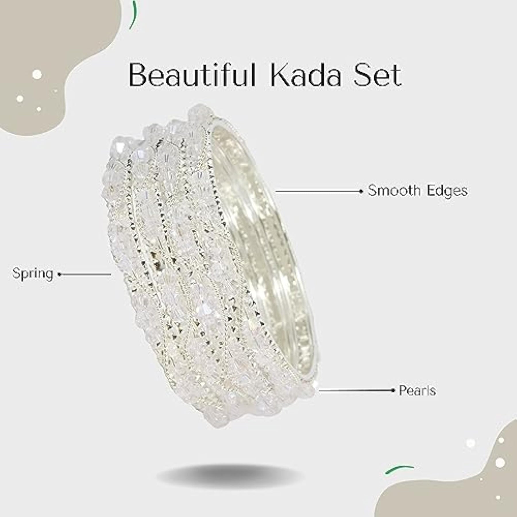 This pack includes 4 stylish bangles with a combination of metal, pearls, and chain for a trendy look.