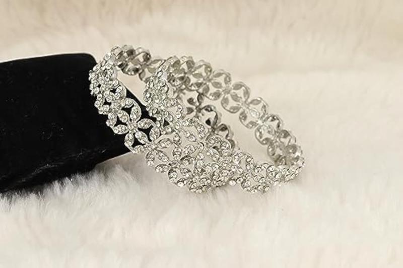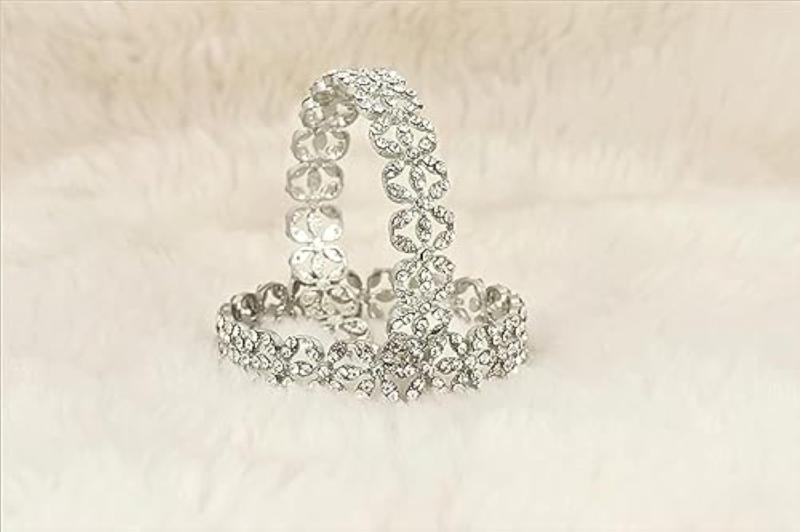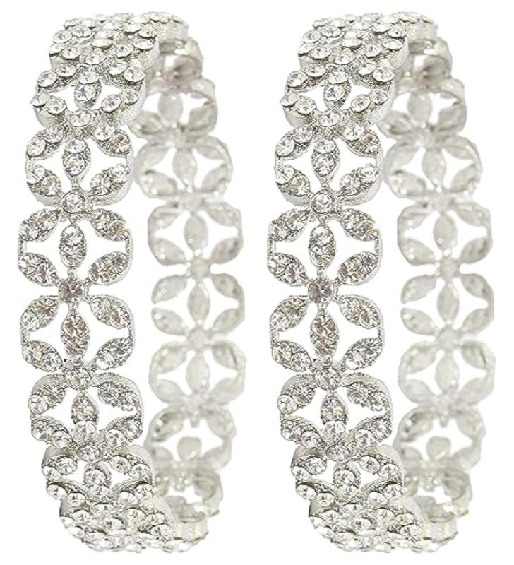 Elegant bangles set made of alloy metal plated with studded American diamond stones. Perfect for special occasions.