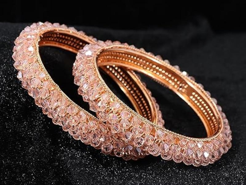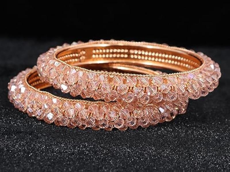Elegant and trendy bangle set with pearls, perfect for any occasion. Includes 2 bangles in rose gold finish.