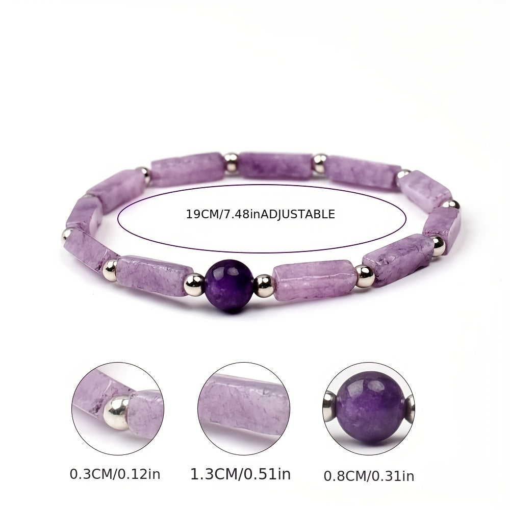 This exquisite bracelet features natural amethyst square bar beads and a pixiu charm. Enhance your energy with this unique accessory.