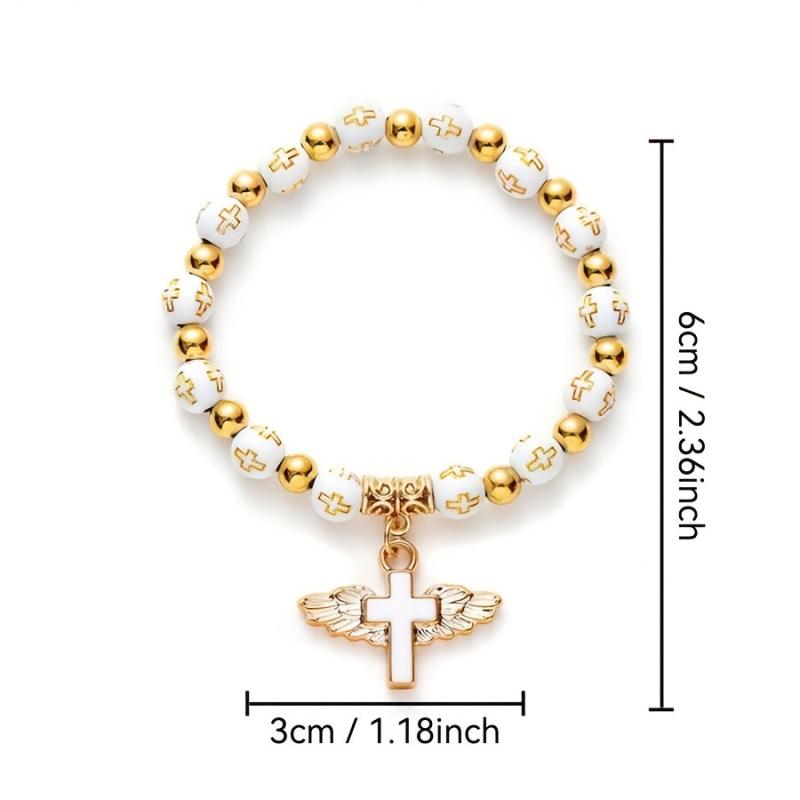 This Angel Cross beaded bracelet is a versatile gift suitable for various occasions like anniversaries, weddings, birthdays, and Christmas. It is made using high-quality materials including acrylic beads and more for a beautiful and meaningful accessory.
