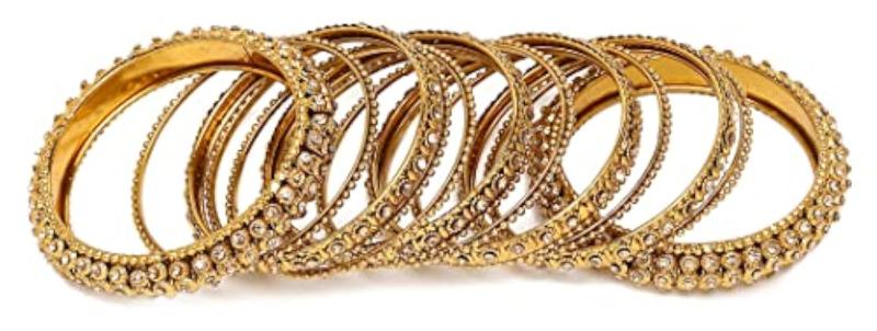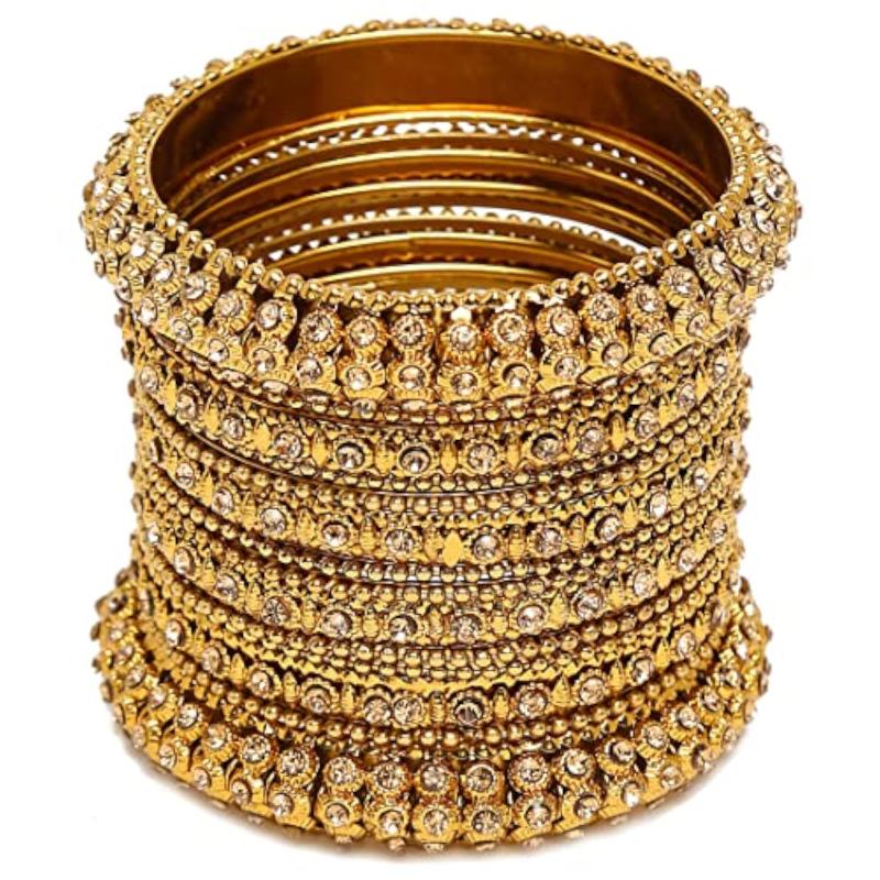 Elegant set of 14 stylish traditional bangles with antique plated finish. Perfect addition to your ethnic jewelry collection.