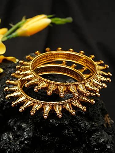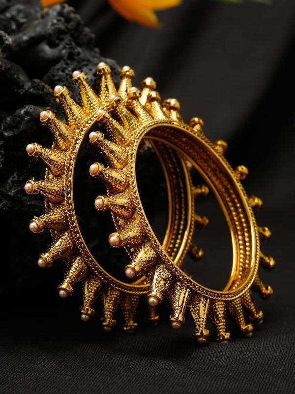 Elegant set of 2 antique plated traditional bangles to add a touch of sophistication to your outfit.
