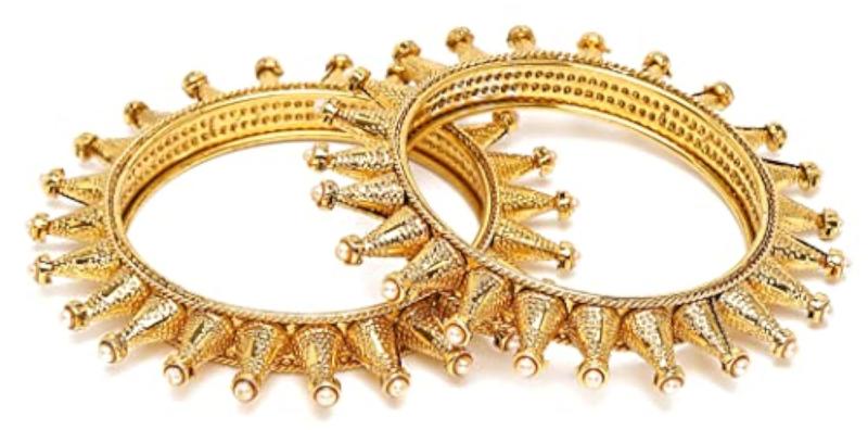 Enhance your look with this set of 2 stylish traditional bangles featuring antique plating. Perfect for any outfit or occasion.