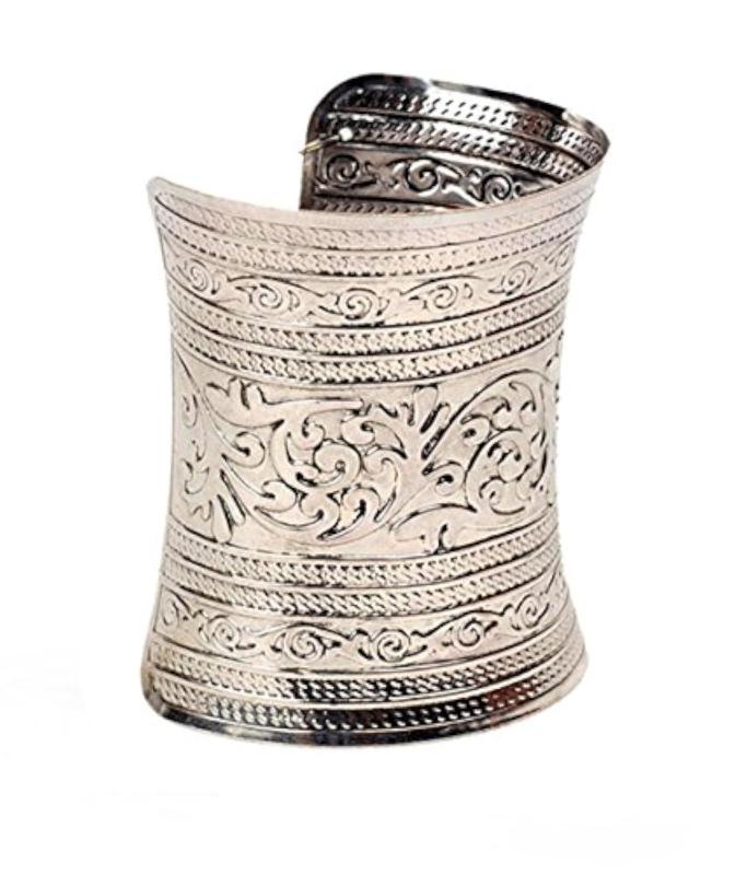 Exquisite antique silver hand cuff with intricate craftsmanship.