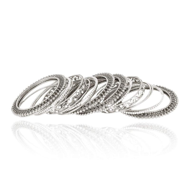 Beautiful oxidised silver bangle with intricate design, perfect for adding a touch of elegance to any outfit.