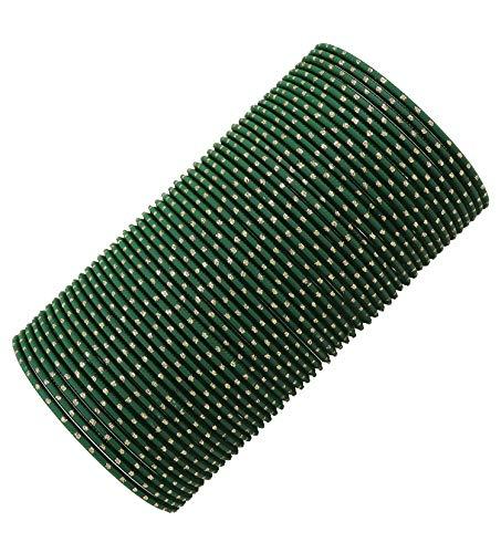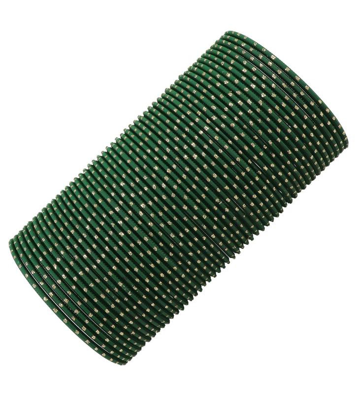 These glossy finished bangles are made of non-precious base metal and feature a polka dot design. Perfect for women and girls, this pack includes 48 bangles in dark green color.