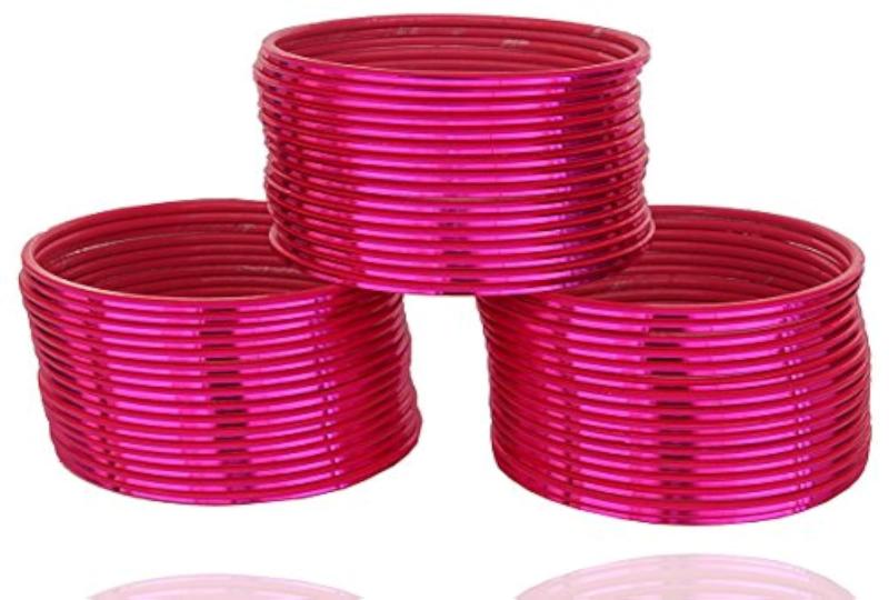 This set includes 48 bangles made of non-precious base metal with a plain glossy finish. Each bangle has a diameter of 2.8 inches, making them suitable for girls.
