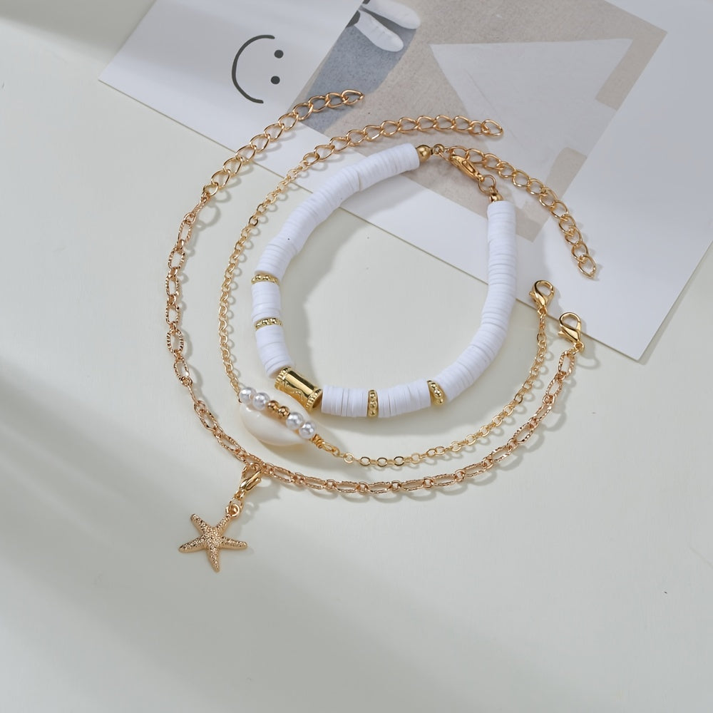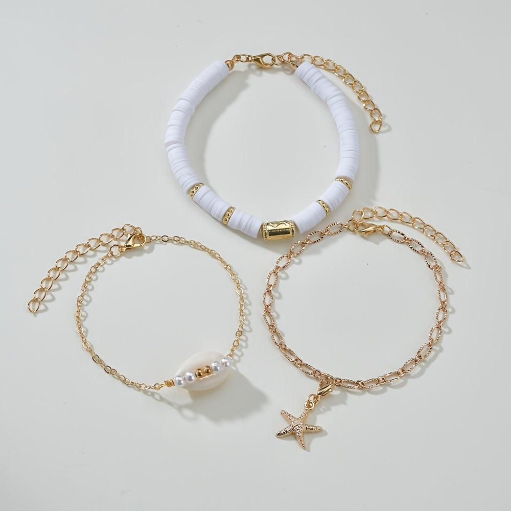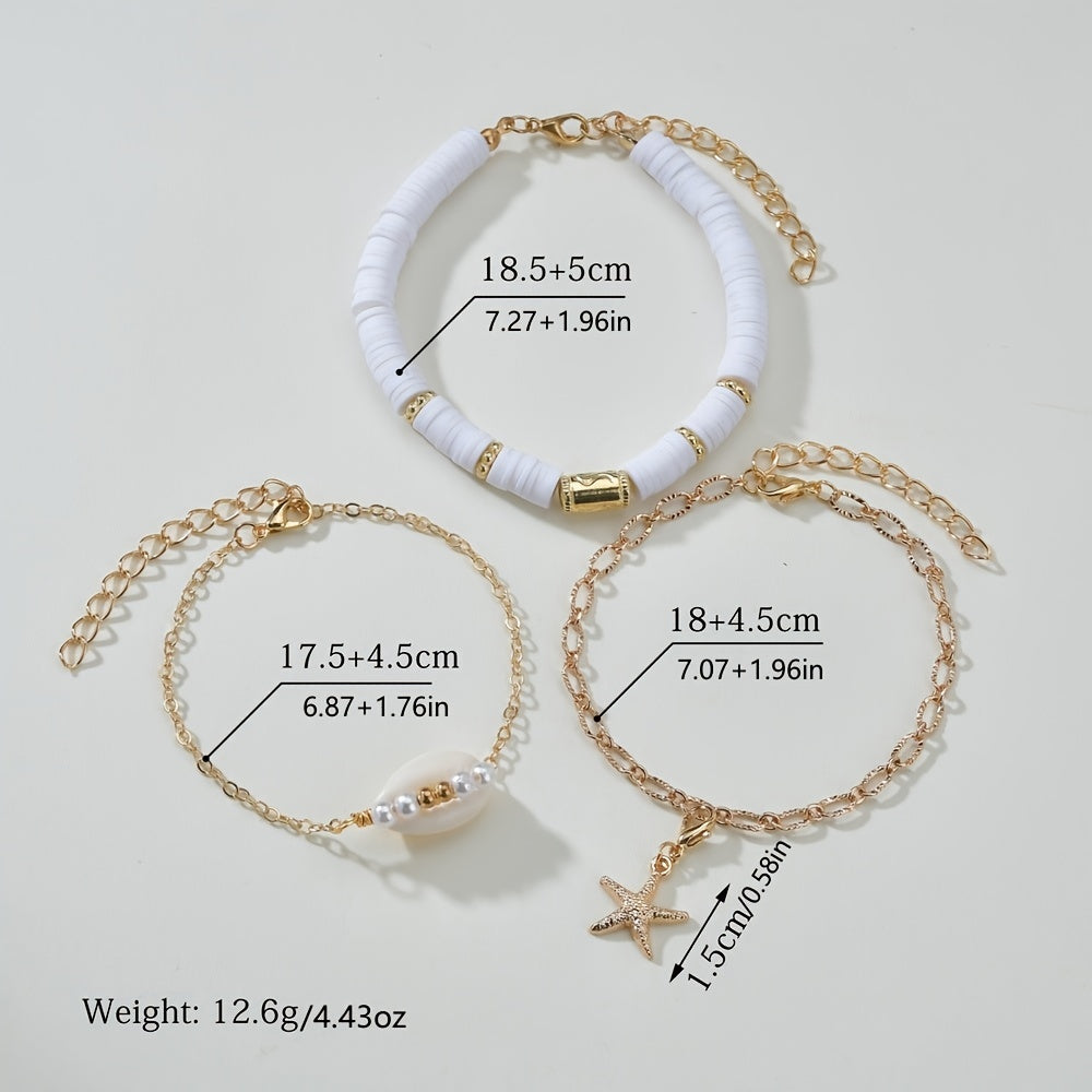 This set includes 3 bohemia style beaded bracelets that are perfect for summer beach clothing decor. They are adjustable and add a touch of charm to any outfit.