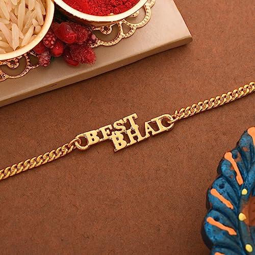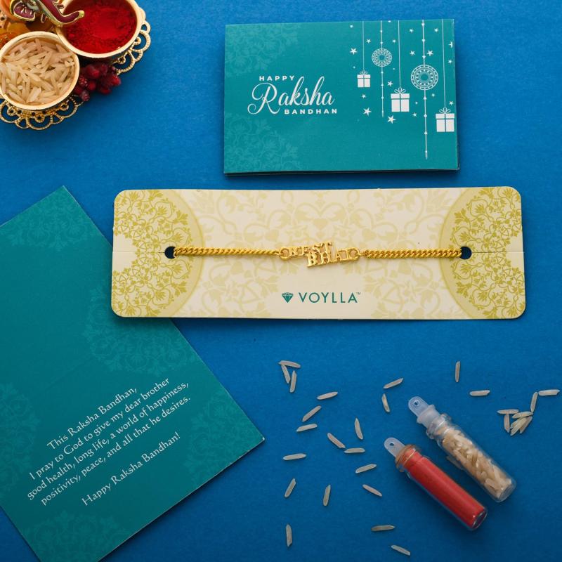 Celebrate the bond of love with this beautiful Rakhi bracelet that features a unique Bhai Tone design.
