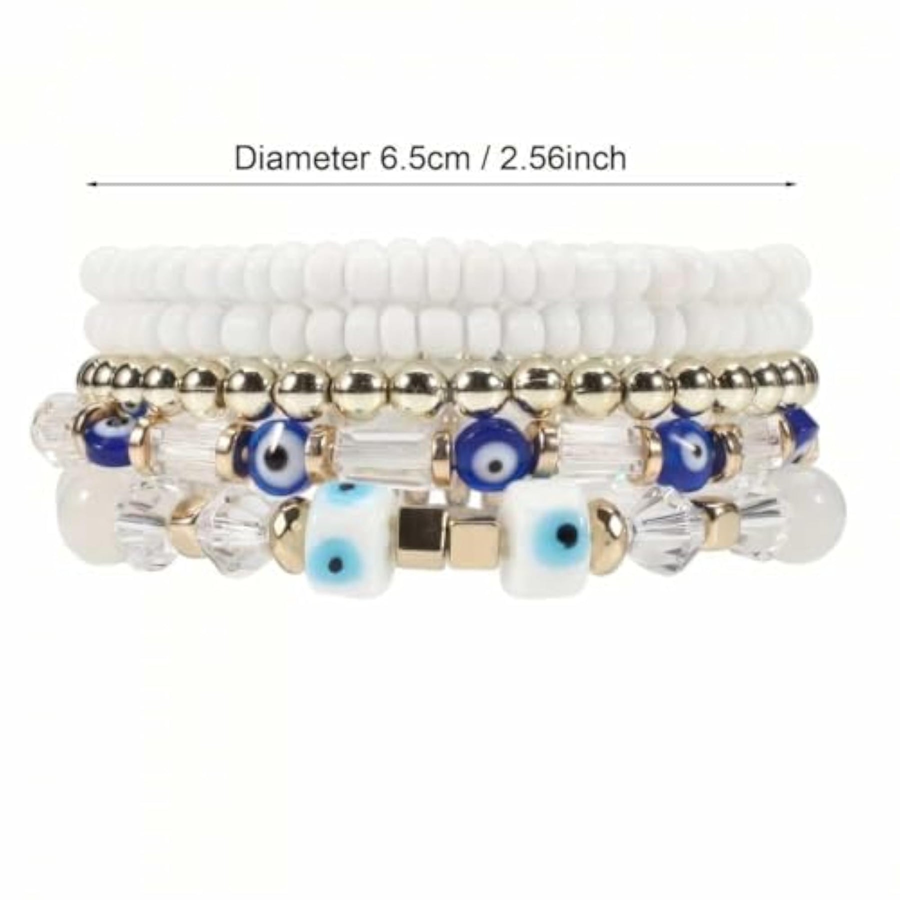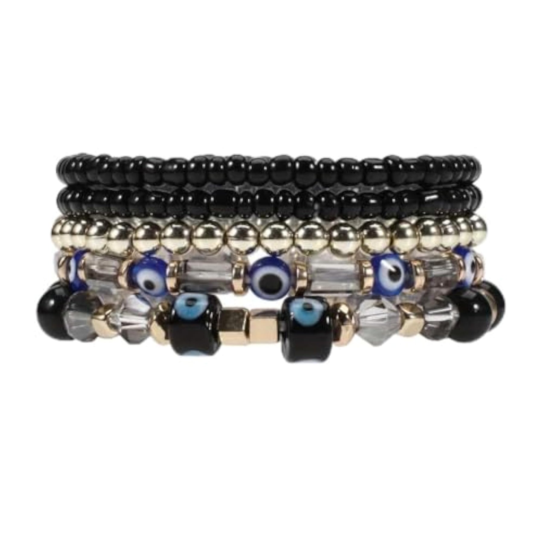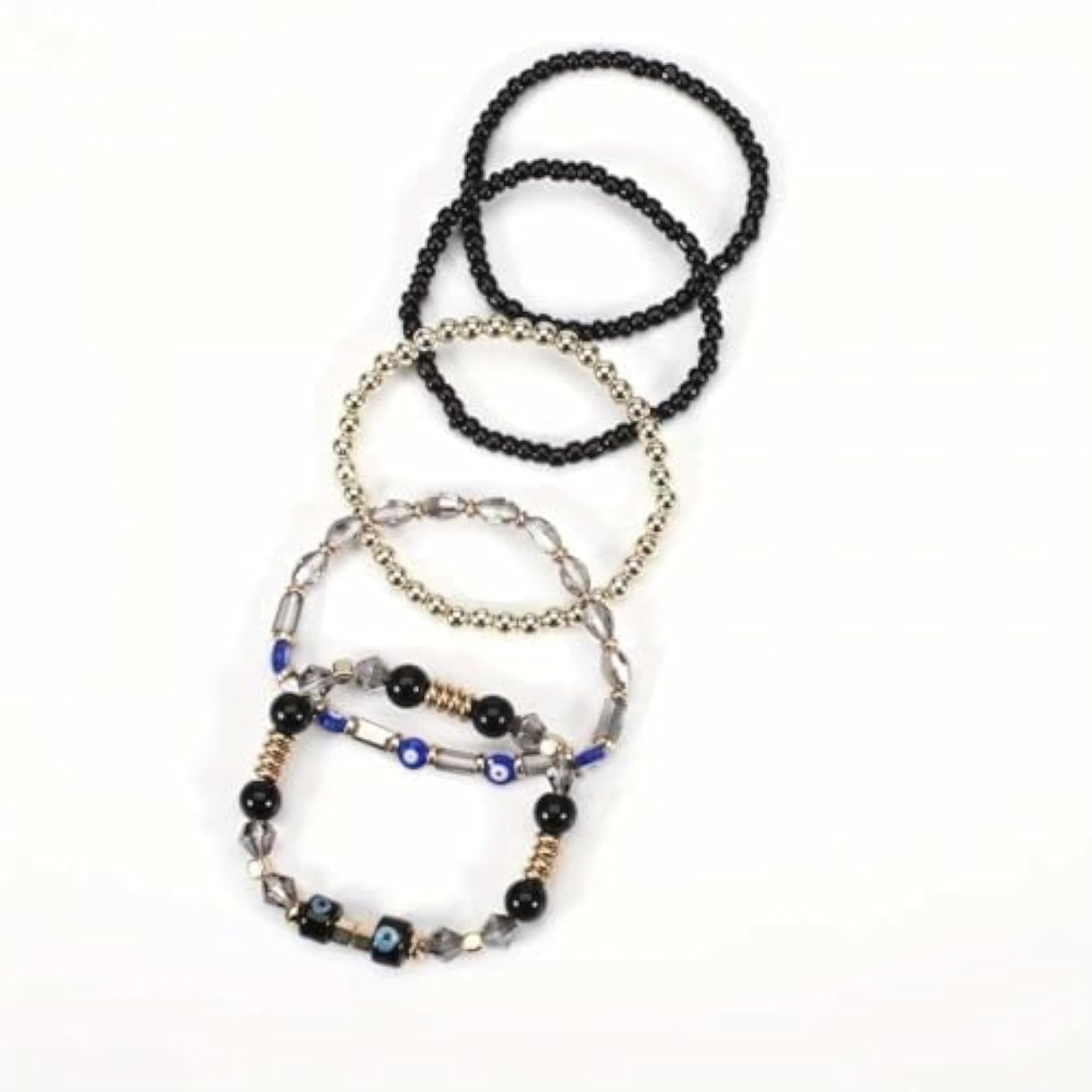 Elevate your style with this set of stackable and stretchable beaded bracelets. Add a touch of boho chic to your look with these versatile bracelets.