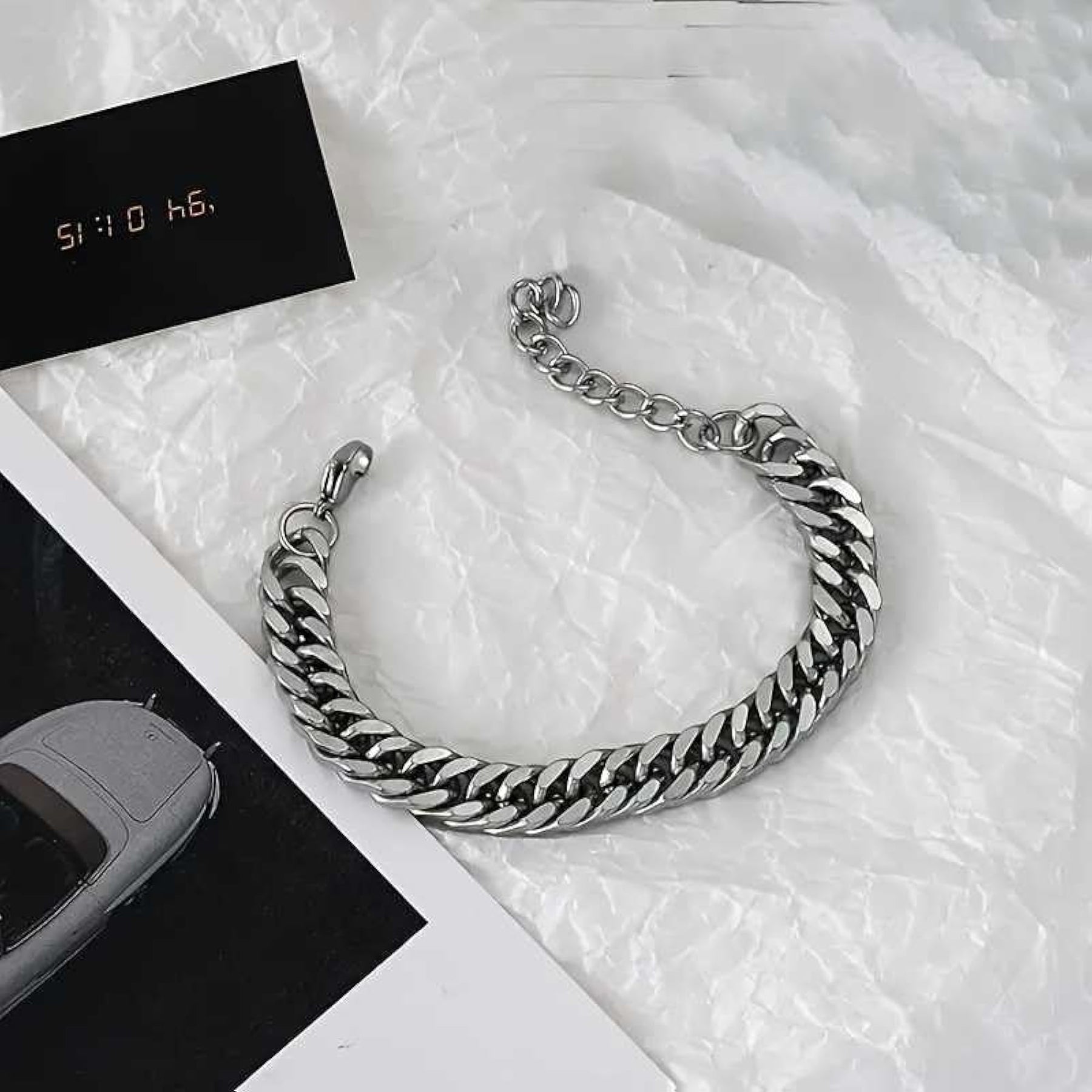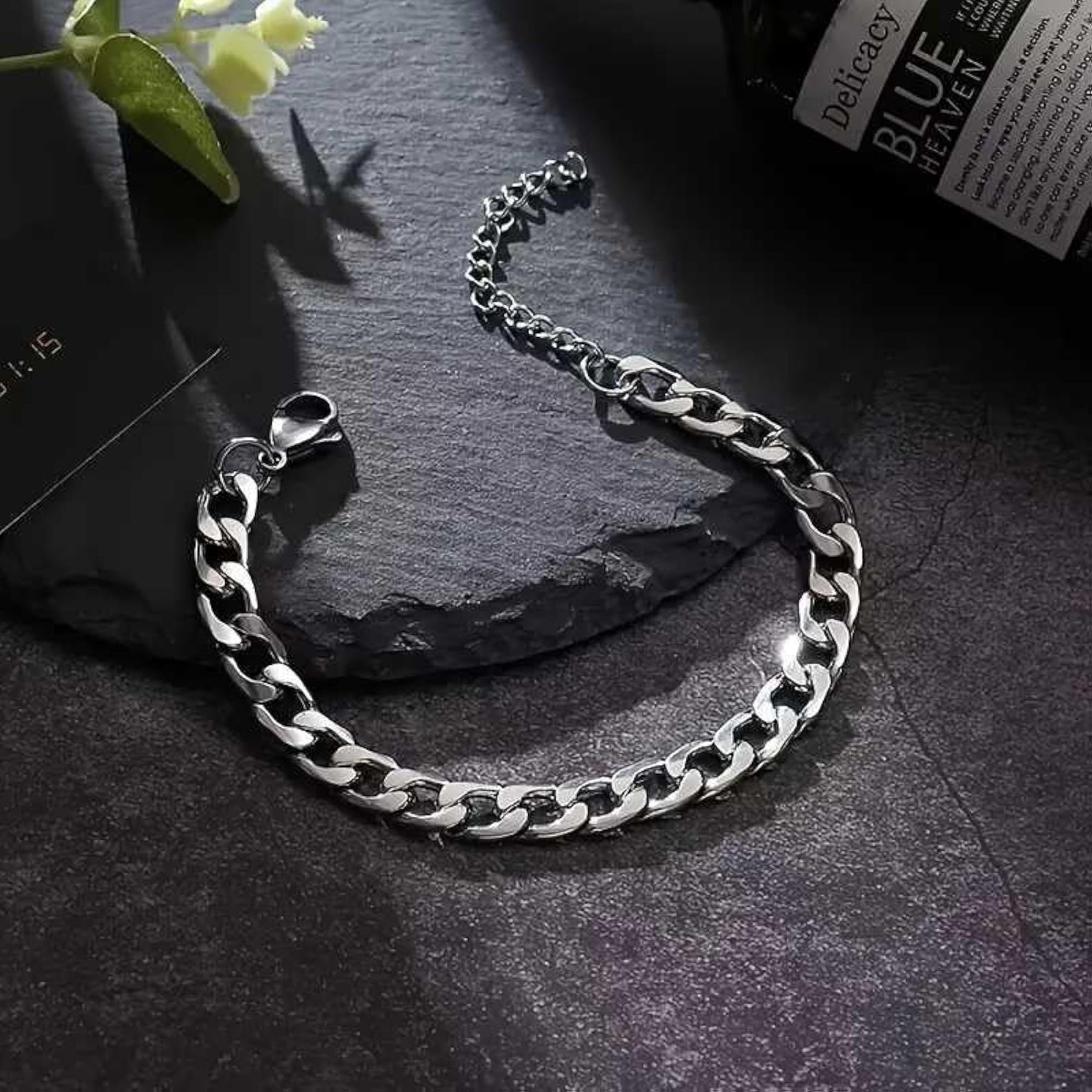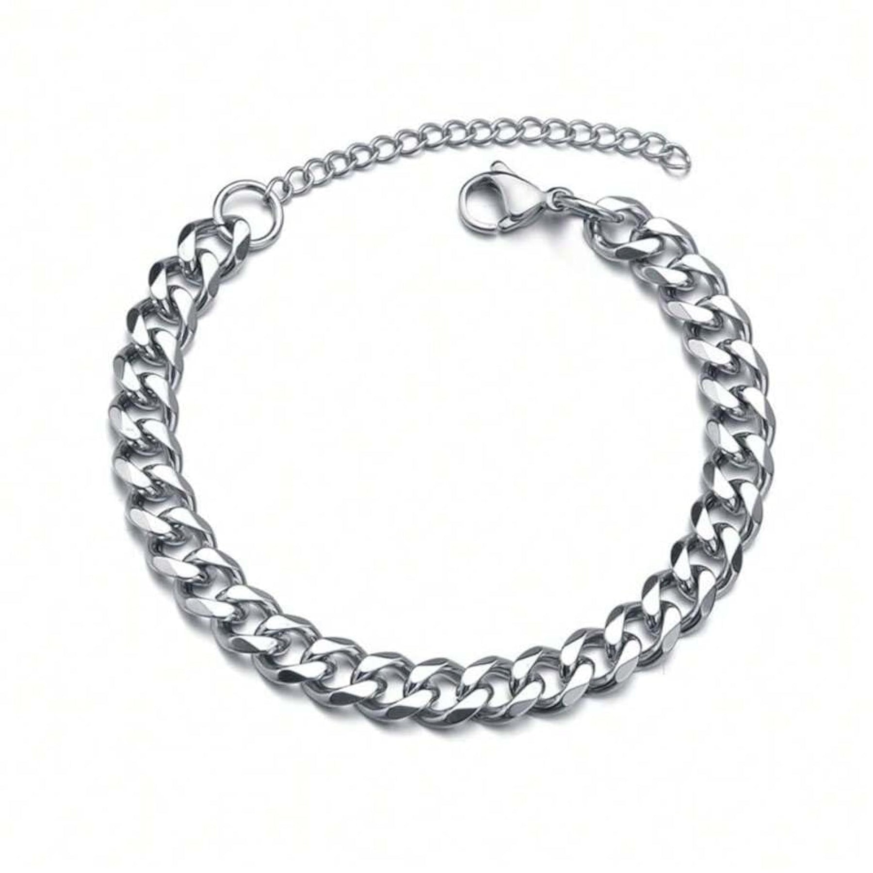 Make a bold statement with this stainless steel plated bracelet that features a Cuban link chain design.